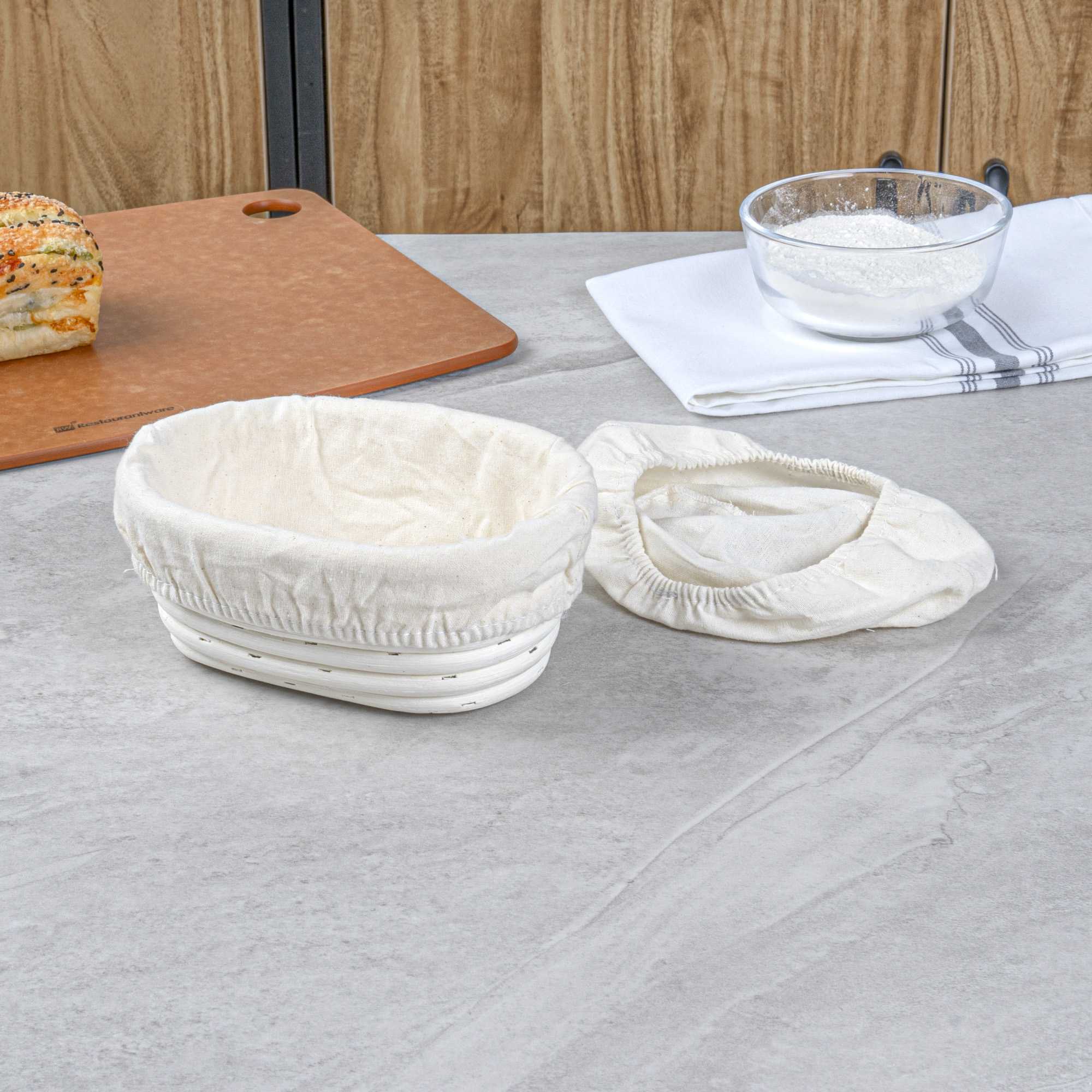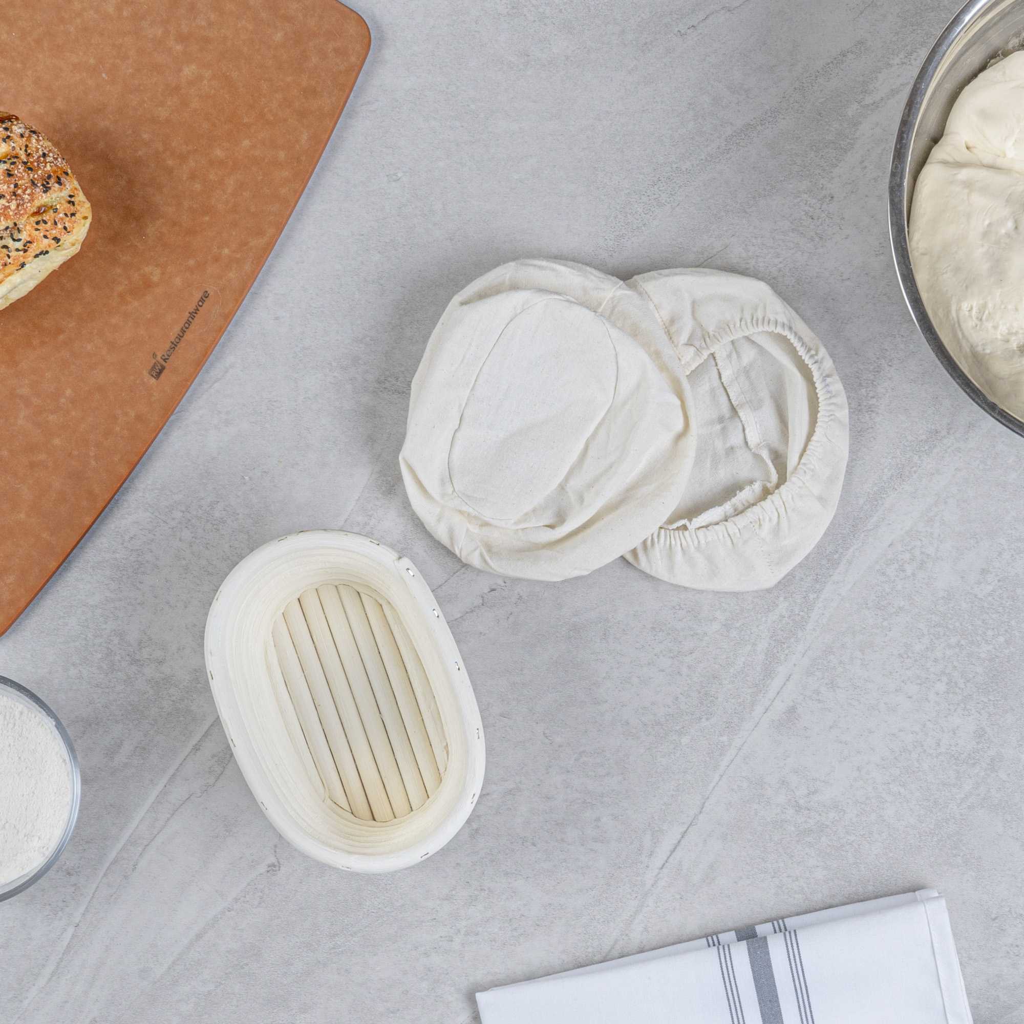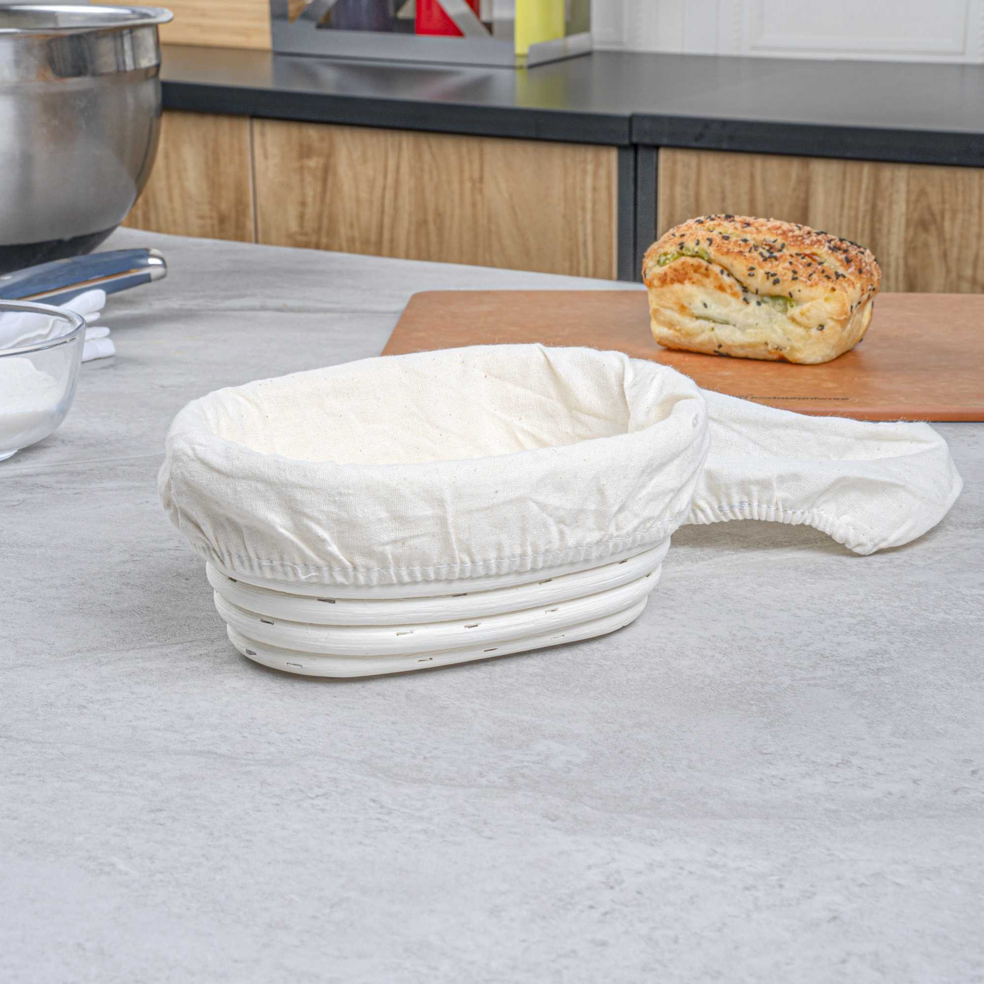 Foster the perfect rise for your dough with the Pastry Tek Rattan Oval Natural Banneton Proofing Basket. This non-stick banneton proofing basket is crafted from natural rattan to enhance dough breathing, supporting a smooth, artisanal bread crust. Its compact size of 6.7 inches in length, 4.7 inches in width, and 3.2 inches in height fits snugly in standard sourdough proofing basket spaces, optimizing your kitchen’s workflow. The included cotton liners ensure effortless dough transfer to your baking sheet, saving time and keeping the dough intact. Rely on this artisan bread basket for clean and convenient proofing, especially when prepping large batches of bread in busy kitchens. Sold in a 1 count box.