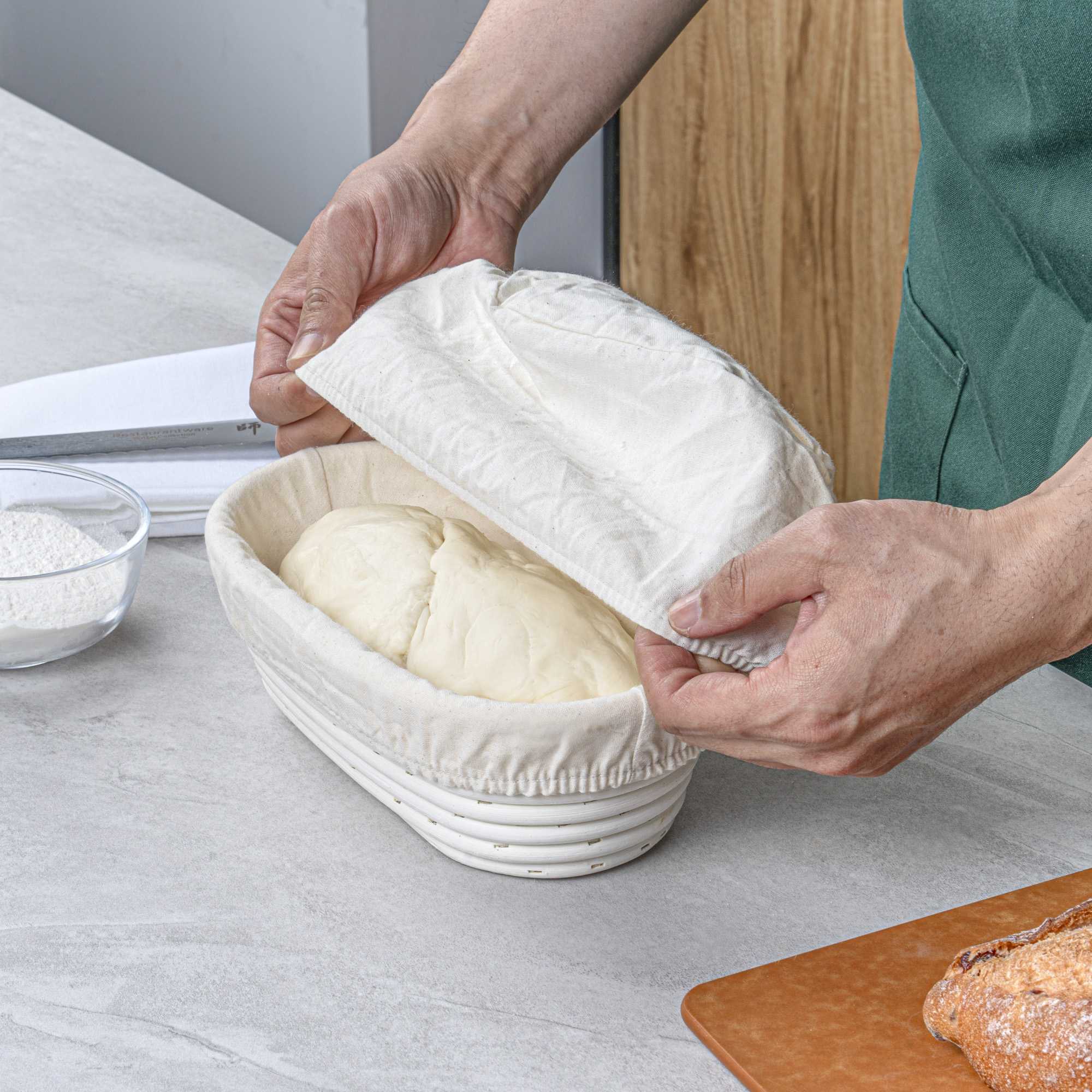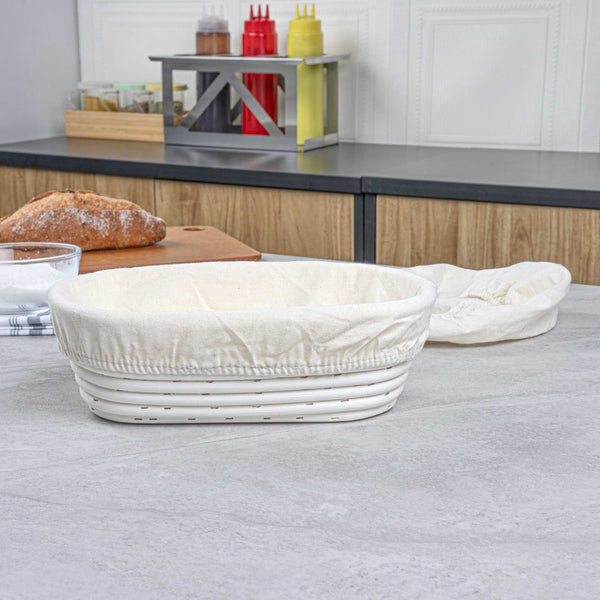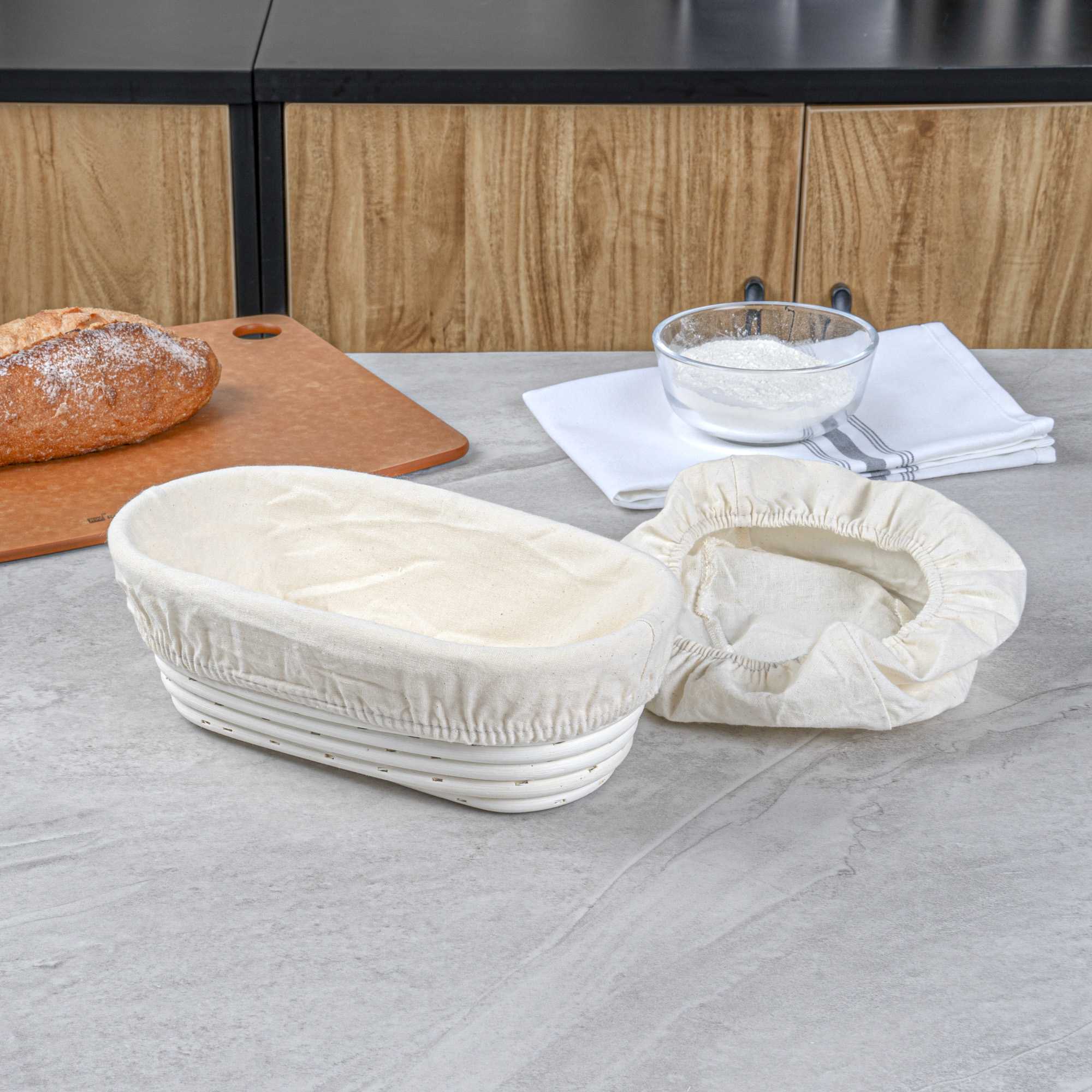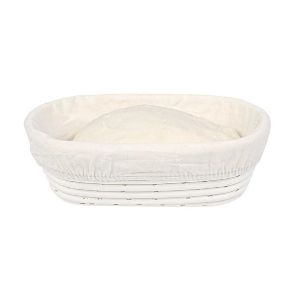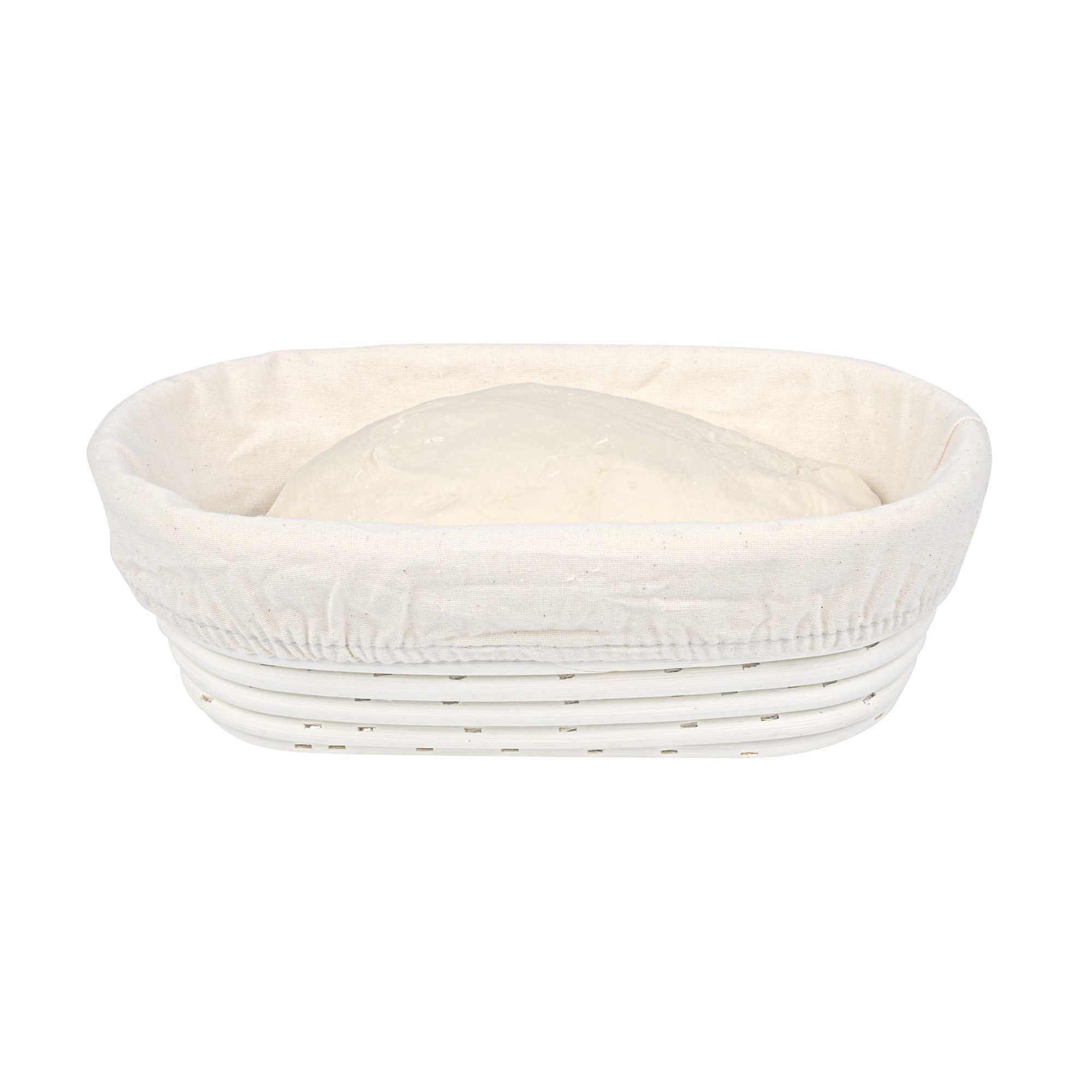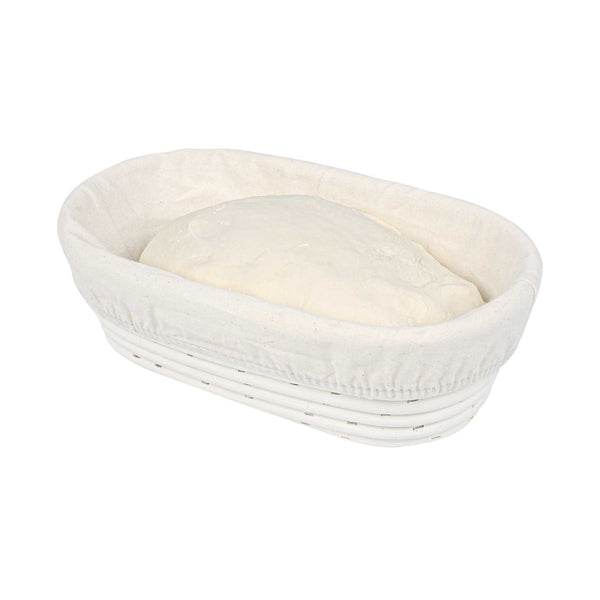 Enhance dough preparation with the Pastry Tek Rattan Oval Natural Banneton Proofing Basket. Crafted from natural rattan, this bread proofing basket supports ideal airflow for proper dough fermentation. Equipped with two cotton liners, this oval banneton basket enables easy dough release and smooth transfer to baking surfaces. Perfect for artisan loaves, this fermentation basket accommodates generous portions to streamline baking in commercial kitchens. With a clean, uncoated surface, this natural rattan basket promotes traditional bread-making techniques. Measuring 9.8 inches in length by 6.1 inches in width and 3 inches in height, this oval bread basket offers ample space for proofing. Sold in a 1 count box.