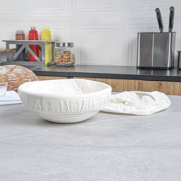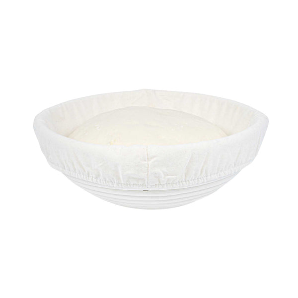 Achieve beautifully artisan loaves with our Pastry Tek Rattan Round Natural Banneton Proofing Basket. The 9.1-inch dimension boasts a rattan construction, enhancing dough's texture while maintaining its shape, ideal for your bread proofing basket needs. Designed to facilitate flawless baking, this sourdough proofing bowl includes cotton liners that ensure convenient dough transfer, minimizing the mess in your kitchen workflow. This rattan dough bowl is cold food friendly and freezer-friendly, providing sustainable and flexible dough storage solutions. Enjoy seamless cleaning with a simple tap or a rinse under hot water, and it dries efficiently in a warm oven, offering practicality for busy kitchen environments. Experience superior reliability and sustainability in each bread-making task with this exceptional tool. Sold in a 1 count box.