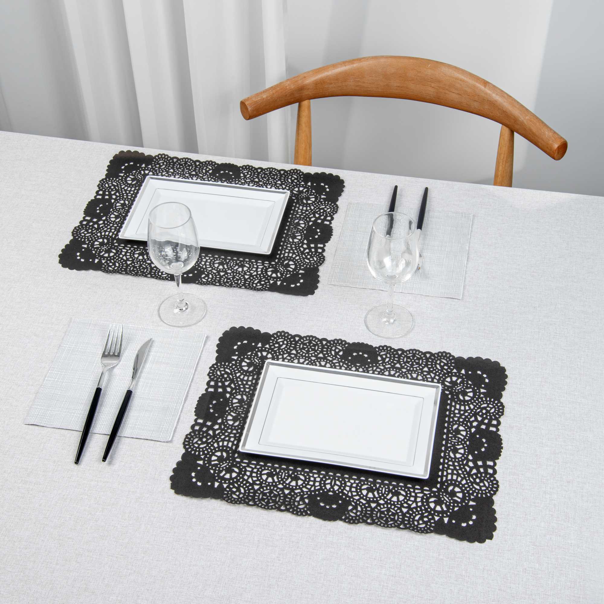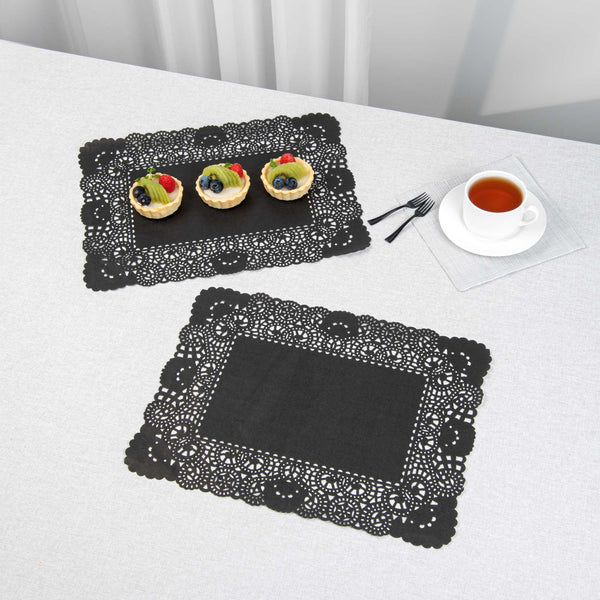 RECTANGLE BLACK PAPER DOILIES - LACE -