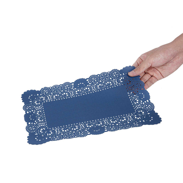 RECTANGLE NAVY BLUE PAPER DOILIES - LACE -