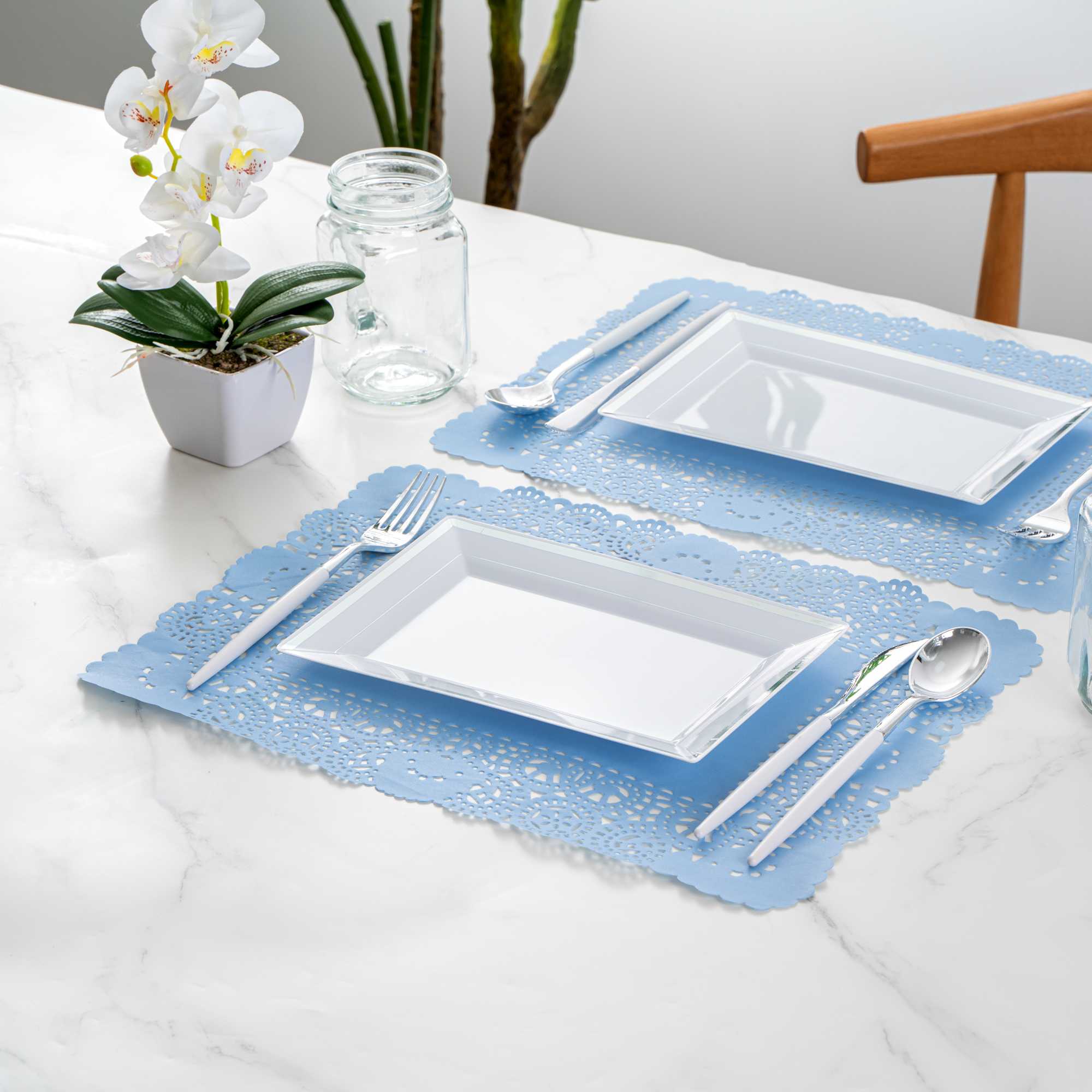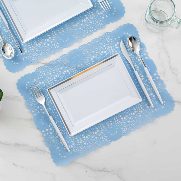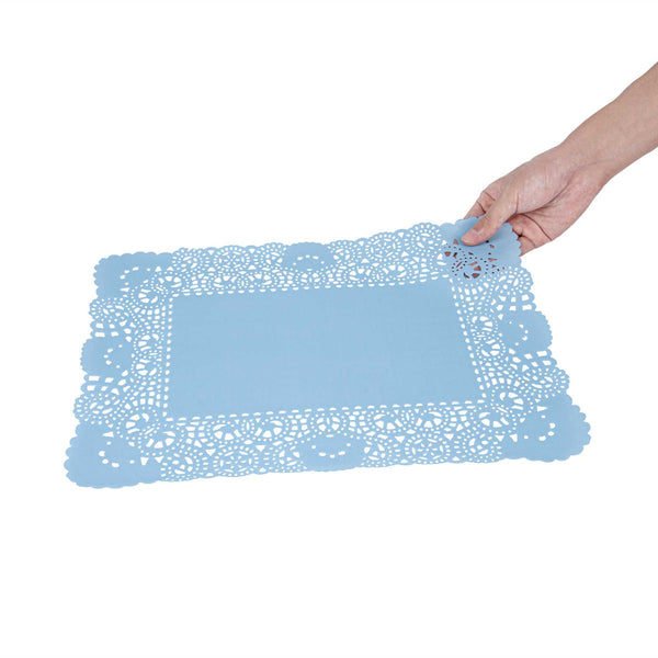 RECTANGLE SKY BLUE PAPER DOILIES - LACE -