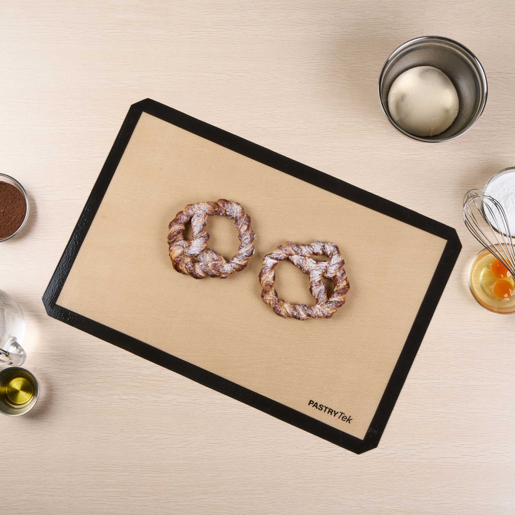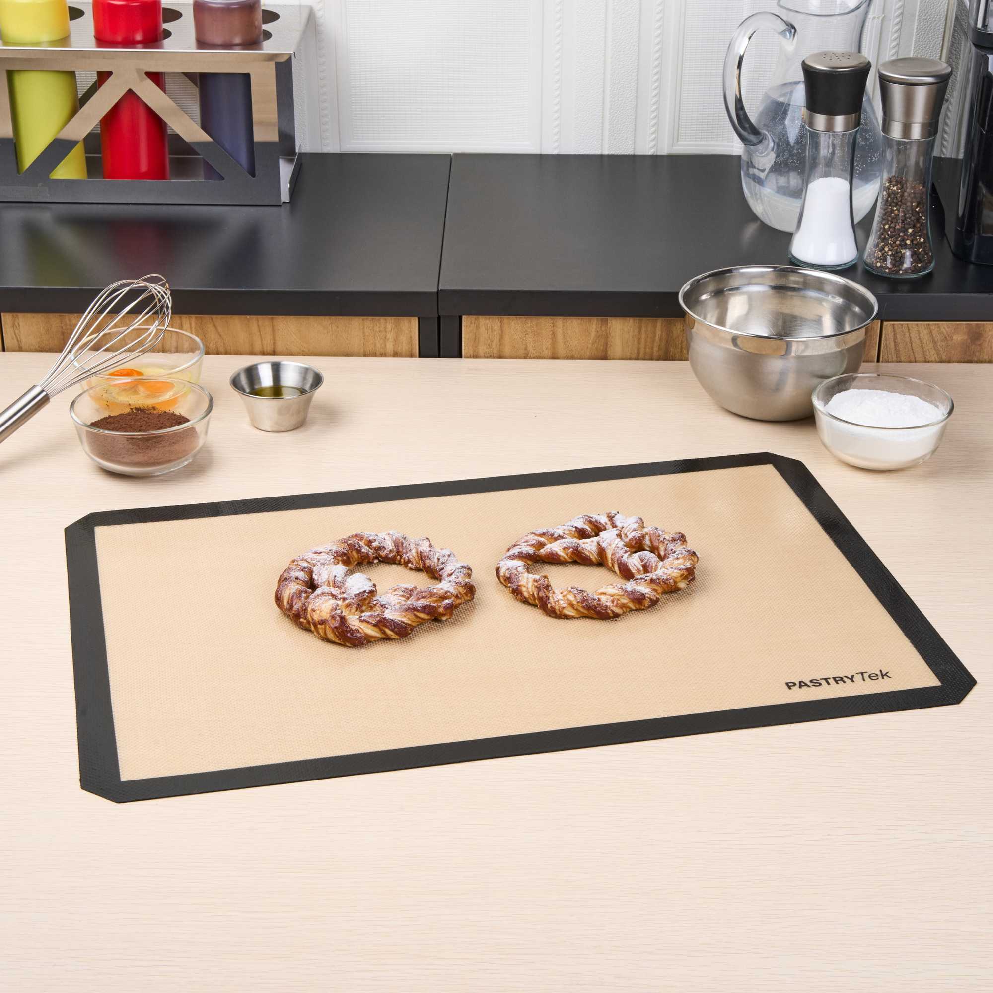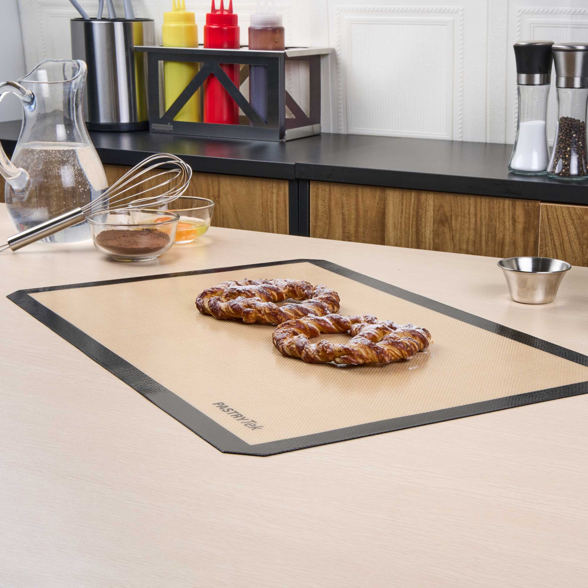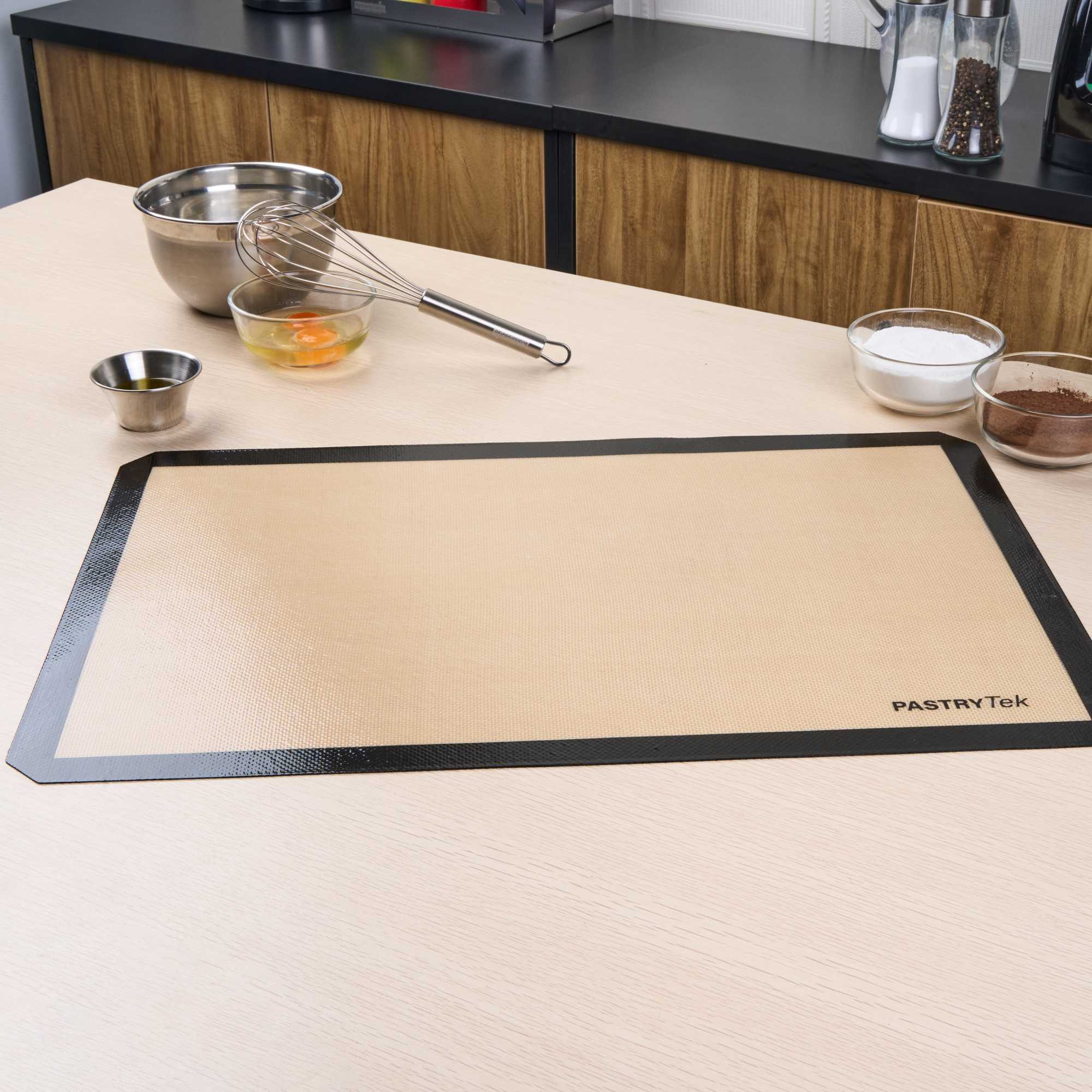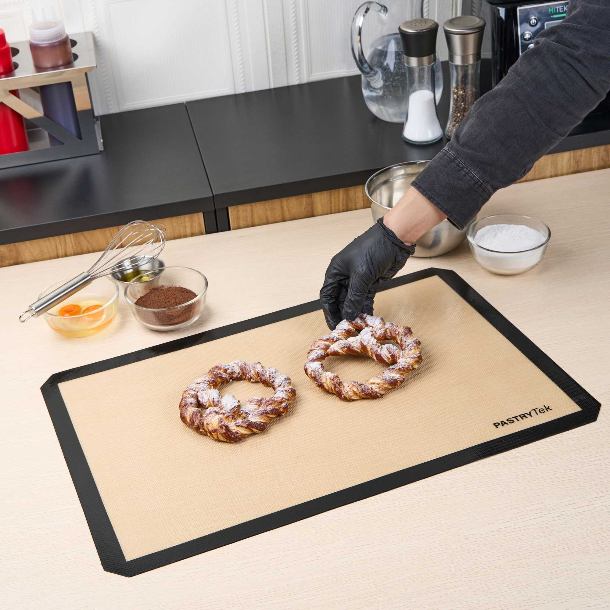 Experience seamless baking with a versatile non-stick baking mat. The Pastry Tek Black Silicone Non-Stick Baking Mat combines a food-grade silicone construction with a generous 15.7 inches by 23.6 inches size, ensuring safe oven use while accommodating a variety of baking applications. Its non-stick and greaseproof surface, coupled with an anti-slip grip, facilitates effortless kneading and rolling, making it a favorite among professional bakers. Designed to be a reusable baking mat, it supports high-volume kitchens, reducing reliance on single-use alternatives and promoting sustainability. Additionally, its easy-to-clean, dishwasher-safe construction ensures quick turnaround times, enhancing kitchen efficiency. The heat-resistant design of this food-grade silicone mat makes it ideal for both hot and cold applications, offering unmatched versatility. Enhance your baking setup with this indispensable tool. Each order includes 1 Pastry Tek Black Silicone Non-Stick Baking Mat.