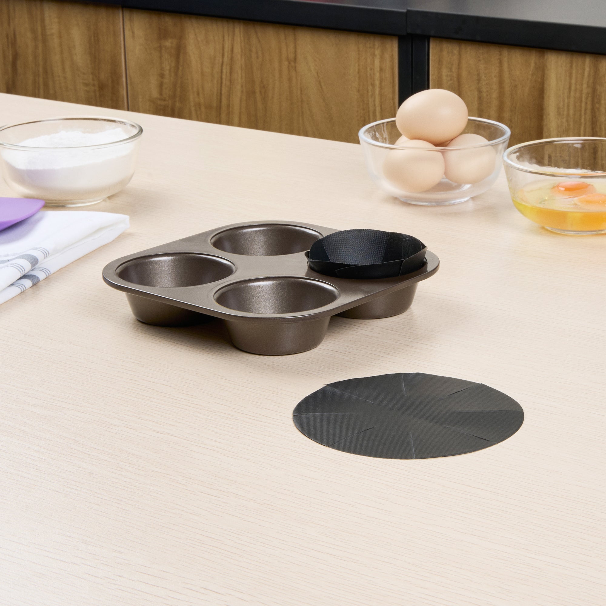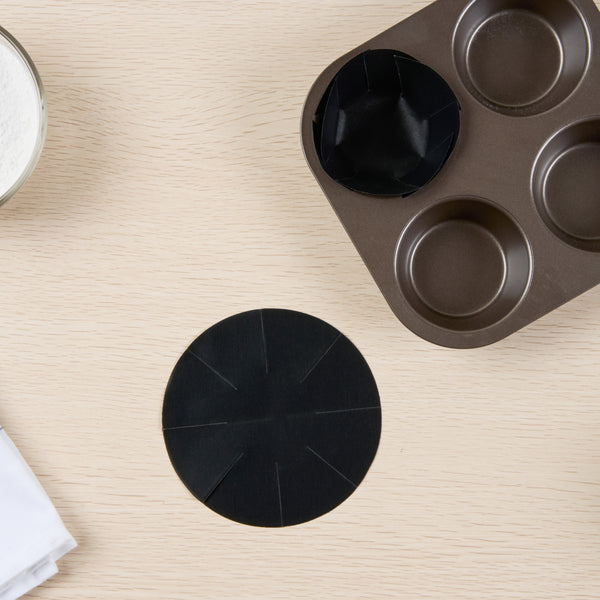 ROUND BLACK FIBERGLASS CUPCAKE / MUFFIN LINER - NON-STICK, FOLDABLE