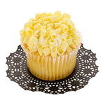 Enhance your presentations with sophisticated flair and effortless cleanup. Pastry Tek Black Paper Doilies feature an elegant lace design that enhances the presentation of baked goods and appetizers, adding a touch of sophistication to any event. These black paper doilies provide a striking contrast that highlights the vibrant colors of plated foods, making them more visually appealing. With a convenient 4-inch diameter, these lace doilies are the ideal size for serving small pastries, cupcakes, or hors d'oeuvres, ensuring versatility in various foodservice applications. Made from premium paper, they prevent unsightly oil stains and messes in service areas, maintaining a clean and professional appearance. Their disposable design streamlines cleanup after events, saving valuable time and labor costs for busy caterers and restaurant operators. Keep your food presentations elegant and efficient with these paper doilies. Each order includes 4000 Pastry Tek Black Paper Doilies.