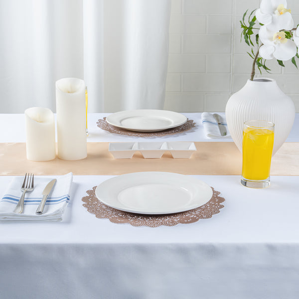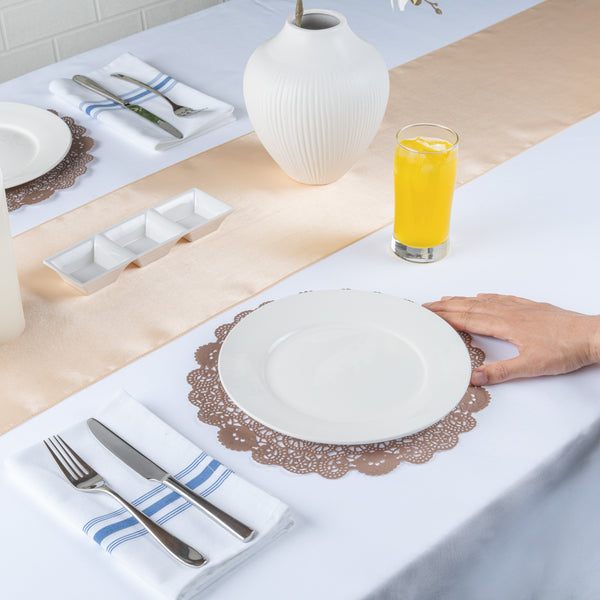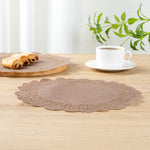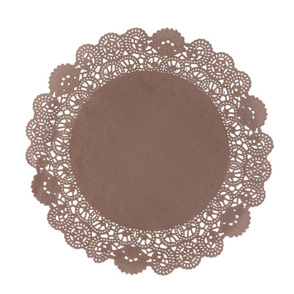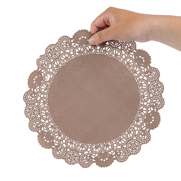Elevate your dessert displays with our Pastry Tek Round Brown Paper Doilies. Crafted from high-quality paper, these table doilies provide unmatched durability while showcasing your desserts at bakeries or catered luncheons without tearing or losing their structural integrity. Featuring intricate lace-like details, these lace doilies increase the visual appeal of food presentations while serving as functional barriers, protecting surfaces, and absorbing moisture. The brown colored paper doilies complement a wide range of table settings and themes, making them an ideal choice for various events and occasions. Disposable by design, these small doilies eradicate the hassle of post-event cleanup, offering a convenient and time-saving solution for busy hosts and food establishments. Perfectly sized at 12 inches in diameter, these paper doilies can be used under cupcakes, petit fours, macarons, and other small treats. Sold in a 100 count box.