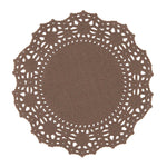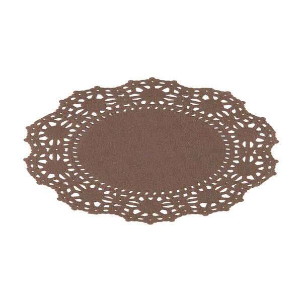 Elevate your dessert displays with our Pastry Tek Round Brown Paper Doilies. Adding an elegant touch to your table settings, these paper doilies are perfect for showcasing double chocolate brownies without compromising durability. Crafted from high-quality paper, these lace doilies maintain their structural integrity, ensuring your treats remain presentable. The intricate lace-like details enhance the visual appeal of food presentations while acting as functional barriers to protect surfaces and absorb moisture. These brown colored paper doilies complement a wide range of table settings and themes, making them ideal for various events and occasions. Designed for convenience, These disposable doilies eradicate the hassle of post-event cleanup, saving time for busy hosts and food establishments. Perfect for small treats like cupcakes, petit fours, and macarons, these small doilies measure 4 inches in diameter. Sold in a 100 count box.