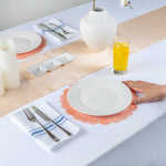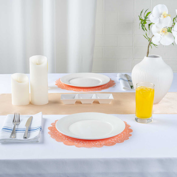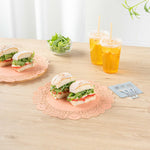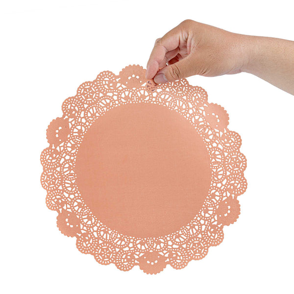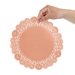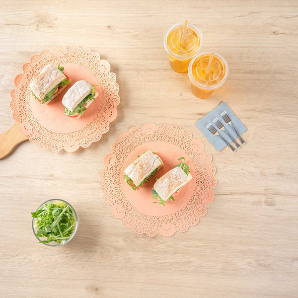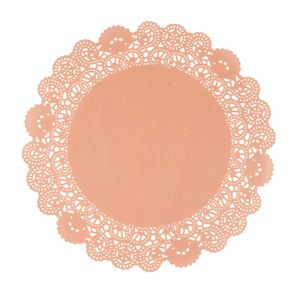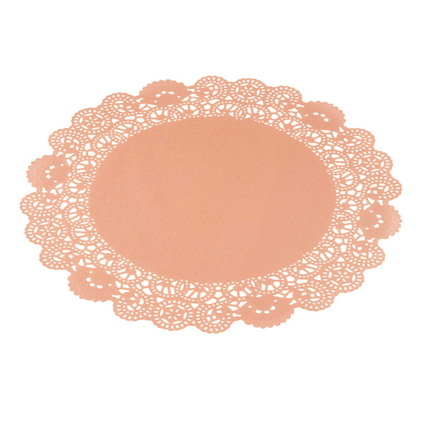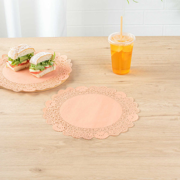 Elevate your dessert displays with our Pastry Tek Round Coral Paper Doilies. These high-quality paper doilies add an elegant touch to any table setting, making them perfect for showcasing desserts at bakeries or catered luncheons. Crafted from durable paper, these lace doilies maintain their structural integrity without tearing. The intricate lace-like details of these table doilies enhance the visual appeal of food presentations while serving as functional barriers that protect surfaces and absorb moisture. With their specific colored finish, these coral colored paper doilies complement a wide range of table settings and themes, making them ideal for various events and occasions. Disposable for convenience, these paper doilies eradicate the hassle of post-event cleanup, offering a time-saving solution for busy hosts and food establishments. Perfect for use under cupcakes, petit fours, macarons, and other small treats, these small doilies measure 12 inches in diameter. Sold in a 4,000 count box.
