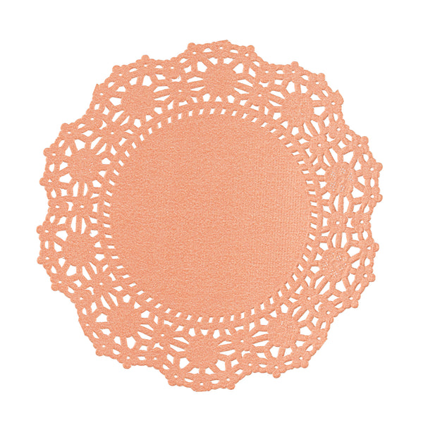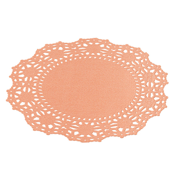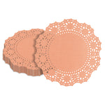 Enhance your dessert displays with our Pastry Tek Round Coral Paper Doilies, adding an elegant touch to any presentation. Crafted from high-quality paper, these lace doilies provide exceptional durability while showcasing desserts at bakeries or catered luncheons without tearing. Featuring intricate lace-like details, these table doilies not only increase the visual appeal of food presentations but also serve as functional barriers by protecting surfaces and absorbing moisture. The versatile coral finish of these colored paper doilies allows them to complement a wide range of table settings and themes, making them perfect for various events and occasions. Designed for convenience, these disposable paper doilies eradicate the hassle of post-event cleanup, offering a time-saving solution for busy hosts and food establishments. Ideal for use under cupcakes, petit fours, macarons, and other small treats, these small doilies provide both functionality and style. Measuring 4 inches in diameter, these lace doilies fit seamlessly into any setup. Sold in a 4,000 count box.
