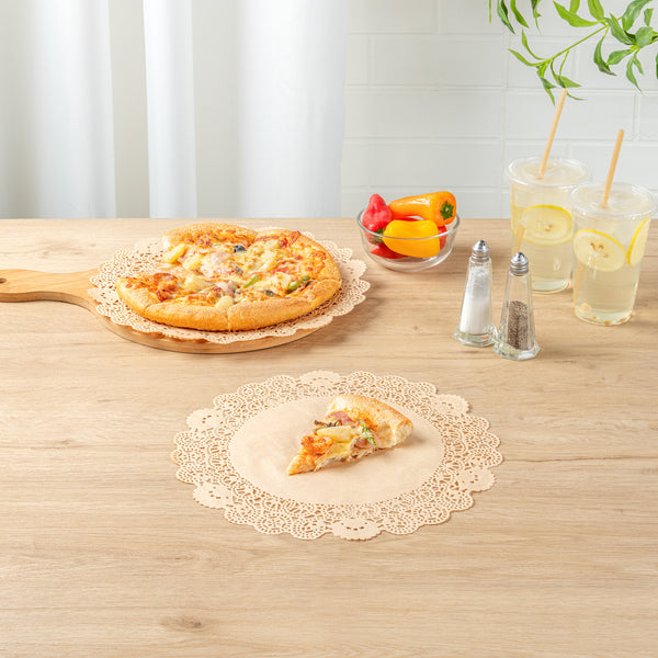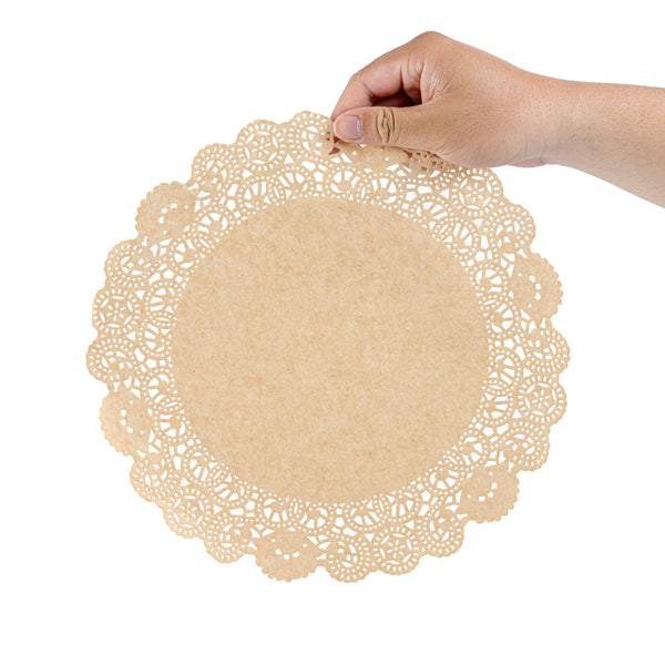 Transform your dessert presentations with our Pastry Tek Round Kraft Paper Doilies. Adding an elegant touch to any display, these paper doilies are crafted from high-quality paper, ensuring durability without tearing or losing structural integrity. These lace doilies beautifully showcase desserts at bakeries or catered luncheons. Featuring intricate lace-like details, these table doilies enhance visual appeal while serving as functional barriers that protect surfaces and absorb moisture. The kraft finish of these doilies complements a wide range of table settings and themes, making them ideal for various events and occasions. Disposable by design, these kraft doilies eradicate the hassle of post-event cleanup, offering a convenient and time-saving solution for busy hosts and food establishments. Whether used under cupcakes, petit fours, macarons, or other small treats, these small doilies add sophistication to any setup. Measuring 12 inches in diameter, these lace doilies are perfectly sized for diverse food presentations. Sold in a 100 count box.