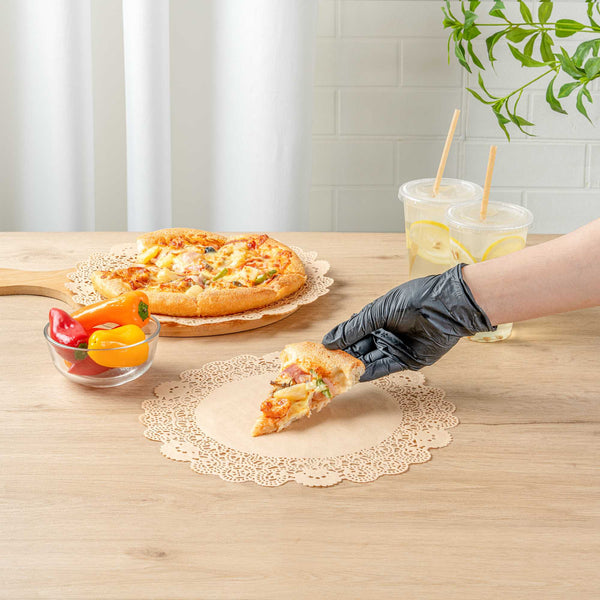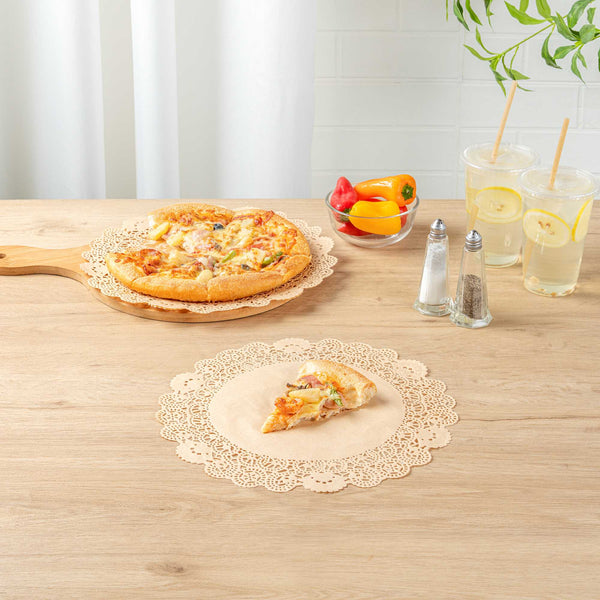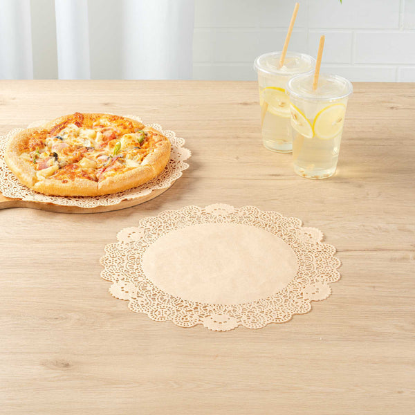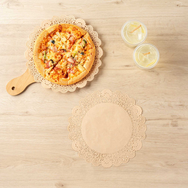Transform your dessert presentations with our Pastry Tek Round Kraft Paper Doilies. Adding an elegant touch to any display, these paper doilies are crafted from high-quality paper, ensuring durability without tearing or losing structural integrity. These lace doilies beautifully showcase desserts at bakeries or catered luncheons. Featuring intricate lace-like details, these table doilies enhance visual appeal while serving as functional barriers that protect surfaces and absorb moisture. The kraft finish of these doilies complements a wide range of table settings and themes, making them ideal for various events and occasions. Disposable by design, these kraft doilies eradicate the hassle of post-event cleanup, offering a convenient and time-saving solution for busy hosts and food establishments. Whether used under cupcakes, petit fours, macarons, or other small treats, these small doilies add sophistication to any setup. Measuring 12 inches in diameter, these lace doilies are perfectly sized for diverse food presentations. Sold in a 4,000 count box.