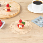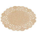 Add an elegant touch to your dessert displays with our Pastry Tek Round Kraft Paper Doilies. Crafted from high-quality paper, these lace doilies provide durability while displaying desserts at bakeries or catered luncheons without tearing or losing their structural integrity. Featuring intricate lace-like details, these table doilies increase the visual appeal of food presentations while serving as functional barriers that protect surfaces and absorb moisture. The kraft finish of these paper doilies is versatile, allowing them to complement a wide range of table settings and themes, making them an ideal choice for various events and occasions. Offering a convenient and time-saving solution, these small doilies are disposable to eradicate the hassle of post-event cleanup. Perfect for placing under cupcakes, petit fours, macarons, and other small treats, these colored paper doilies measure 6 inches in diameter. Sold in a 100 count box.