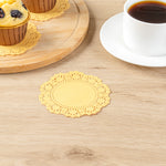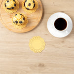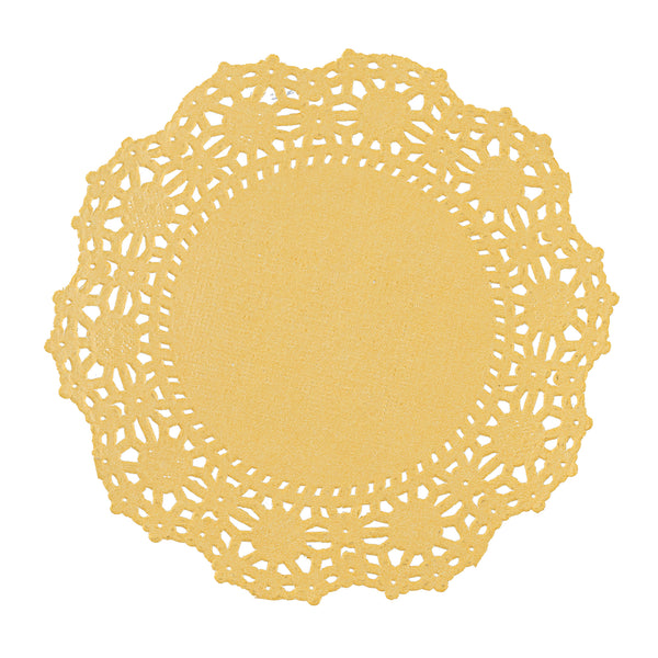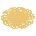 Enhance your dessert displays with our Pastry Tek Round Orange Paper Doilies. These paper doilies add an elegant touch to your dessert presentations, making them perfect for showcasing double chocolate brownies at bakeries or catered luncheons. Crafted from high-quality paper, these lace doilies provide durability without tearing or losing their structural integrity. Featuring intricate lace-like details, these table doilies increase the visual appeal of food presentations while serving as functional barriers to protect surfaces and absorb moisture. The specific colored paper doilies' finish is versatile, allowing them to complement a wide range of table settings and themes, making them an ideal choice for various events and occasions. Disposable by design, these small doilies eradicate the hassle of post-event cleanup, offering a convenient and time-saving solution for busy hosts and food establishments. These small doilies can be used under cupcakes, petit fours, macarons, and other small treats, adding a touch of sophistication to any display. Measuring 4 inches in diameter, these paper doilies fit perfectly under a variety of treats. Sold in a 100 count box.