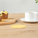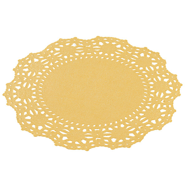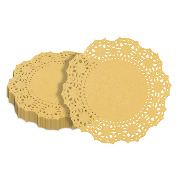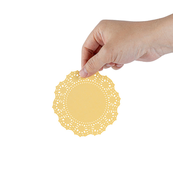 Enhance your dessert displays with our Pastry Tek Round Orange Paper Doilies, adding an elegant touch to every presentation. Crafted from high-quality paper, these lace doilies provide durability while showcasing double chocolate brownies at bakeries or catered luncheons without tearing or losing their structural integrity. Featuring intricate lace-like details, these table doilies increase the visual appeal of food presentations while serving as functional barriers, protecting surfaces and absorbing moisture. With their specific colored finish, these colored paper doilies are versatile, complementing a wide range of table settings and themes, making them perfect for various events and occasions. These small doilies are disposable to eradicate the hassle of post-event cleanup, offering a convenient and time-saving solution for busy hosts and food establishments. Perfect for a variety of small treats, these paper doilies can be used under cupcakes, petit fours, macarons, and other delicate desserts. Measuring 4 inches in diameter, these lace doilies are ideal for creating sophisticated and visually appealing food presentations. Sold in a 4,000 count box.