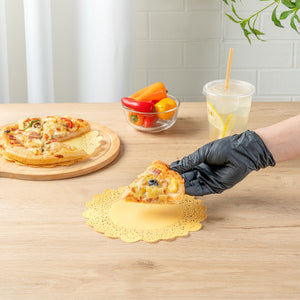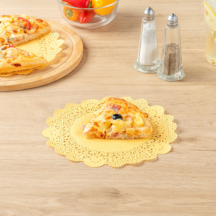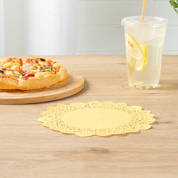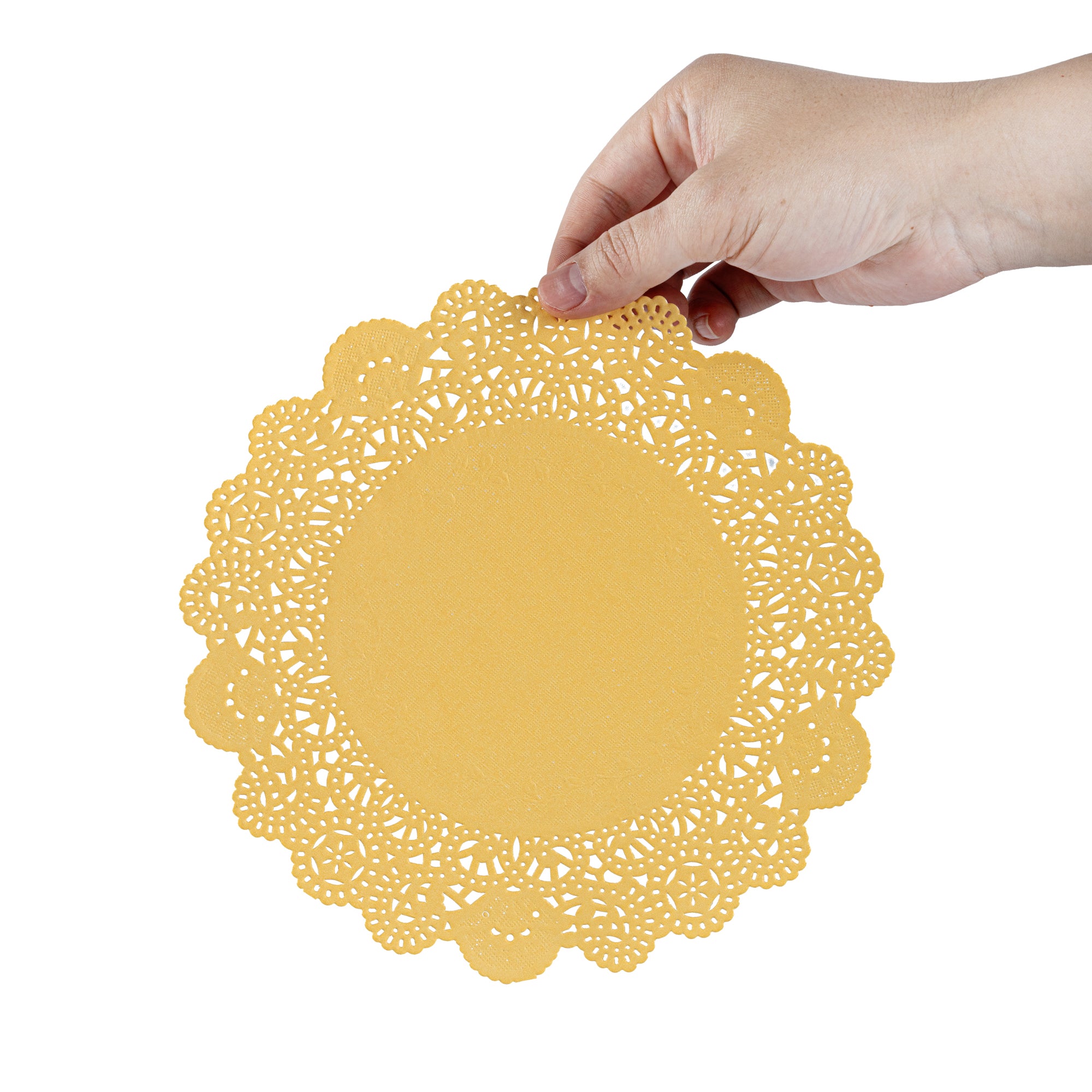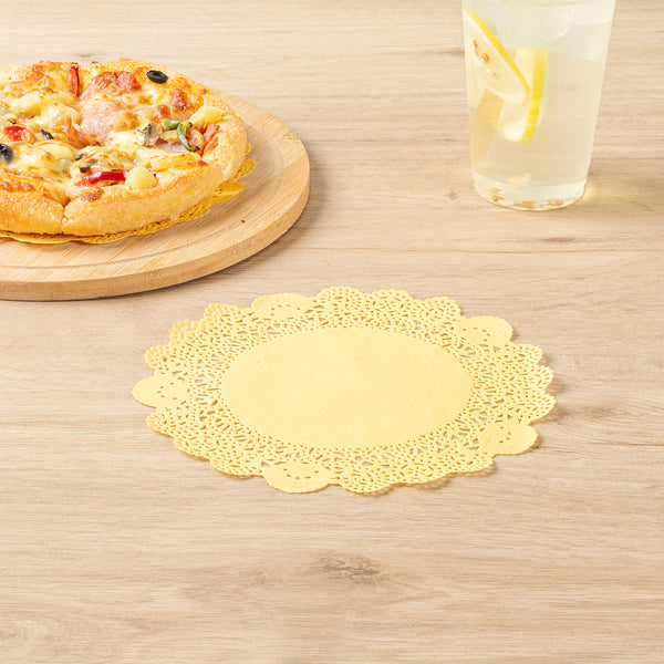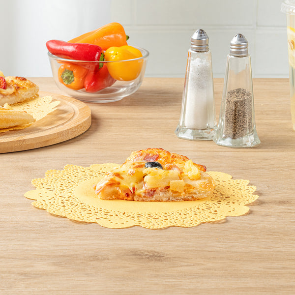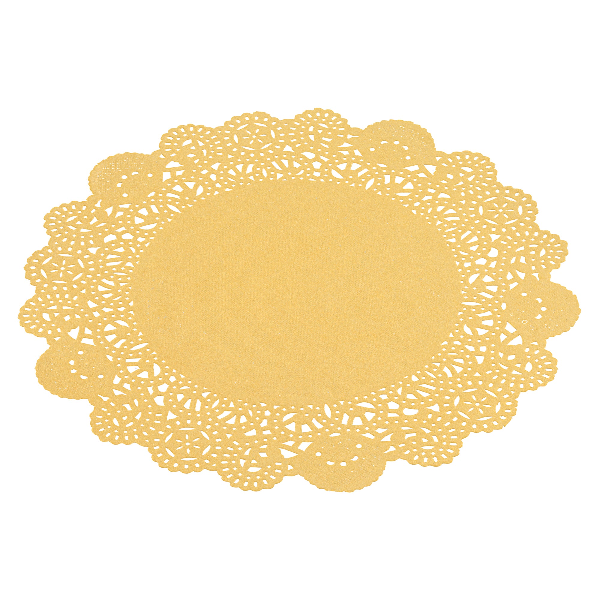Elevate your dessert presentations with our Pastry Tek Round Orange Paper Doilies. Crafted from high-quality paper, these lace doilies provide durability and elegance, ensuring that desserts at bakeries or catered luncheons remain intact without tearing. Featuring intricate lace-like details, these table doilies not only enhance the visual appeal of your food displays but also serve as functional barriers, protecting surfaces and absorbing moisture. The vibrant orange finish of these colored paper doilies makes them versatile enough to complement a wide range of table settings and themes, perfect for various events and occasions. Designed to be disposable, these small doilies eradicate the hassle of post-event cleanup, offering a convenient and time-saving solution for busy hosts and food establishments. Measuring 8 inches in diameter, these lace doilies are ideal for use under cupcakes, petit fours, macarons, and other small treats. Sold in a 4,000 count box.