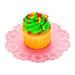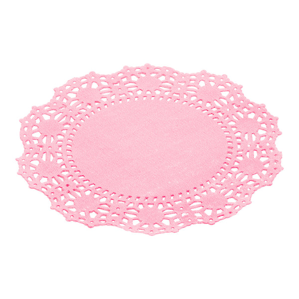 Showcase your sweet creations with a delightful flourish with our Pastry Tek Pink Paper Lace Doilies. These lace doilies are created from premium paper, ensuring durable structure integrity while displaying strawberry cupcakes at bakeries without compromising on their high-quality appearance. Each pink paper doily is designed in a circular shape with intricate lace-like details to enhance the overall elegance of dessert displays. To uphold a clean and impeccable presentation, these paper doilies act as a protective barrier to prevent spills or stains from affecting surfaces, while also skillfully absorbing moisture. These 4-inch doilies have a charming pink finish to create eye-catching and visually appealing backdrops for dessert displays or decorative touch under lovely centerpieces. For a breezy cleanup, these pink lace doilies are disposable and ideal for parties, ensuring effortless tidying up after dessert presentations and saving time for hosts. Measuring 4 inches in diameter, these round doilies add a touch of sophistication and elegance to any dessert or pastry presentation, elevating the overall aesthetic appeal. Shipped in a 4,000 count box.