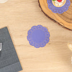 Elevate your dessert presentations with our Pastry Tek Round Purple Paper Doilies. These elegant paper doilies add a sophisticated touch to any dessert display, enhancing the visual appeal of your culinary creations. Crafted from high-quality paper, these lace doilies provide durability while displaying double chocolate brownies at bakeries or catered luncheons without tearing or losing their structural integrity. Featuring intricate lace-like details, these table doilies increase the visual appeal of food presentations while serving as functional barriers, protecting surfaces, and absorbing moisture. The specific colored finish of these doilies is versatile, allowing them to complement a wide range of table settings and themes, making them an ideal choice for various events and occasions. These disposable paper doilies eradicate the hassle of post-event cleanup, offering a convenient and time-saving solution for busy hosts and food establishments. Perfect for use under cupcakes, petit fours, macarons, and other small treats, these small doilies are both functional and decorative. Each lace doily measures 4 inches in diameter, making them suitable for a variety of uses in the food industry. Sold in a 100 count box.