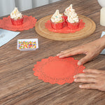 ROUND RED PAPER DOILIES - LACE