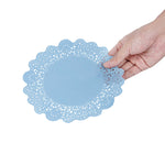 ROUND SKY BLUE PAPER DOILIES - LACE