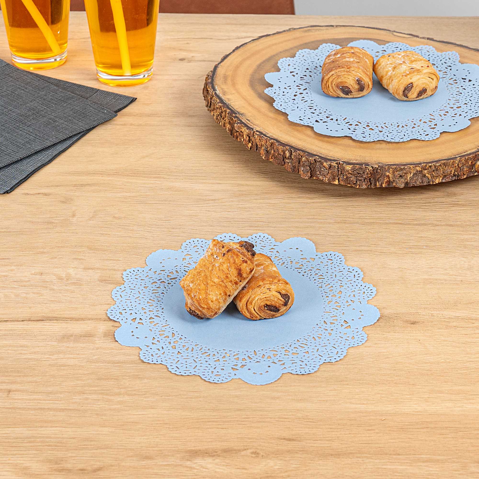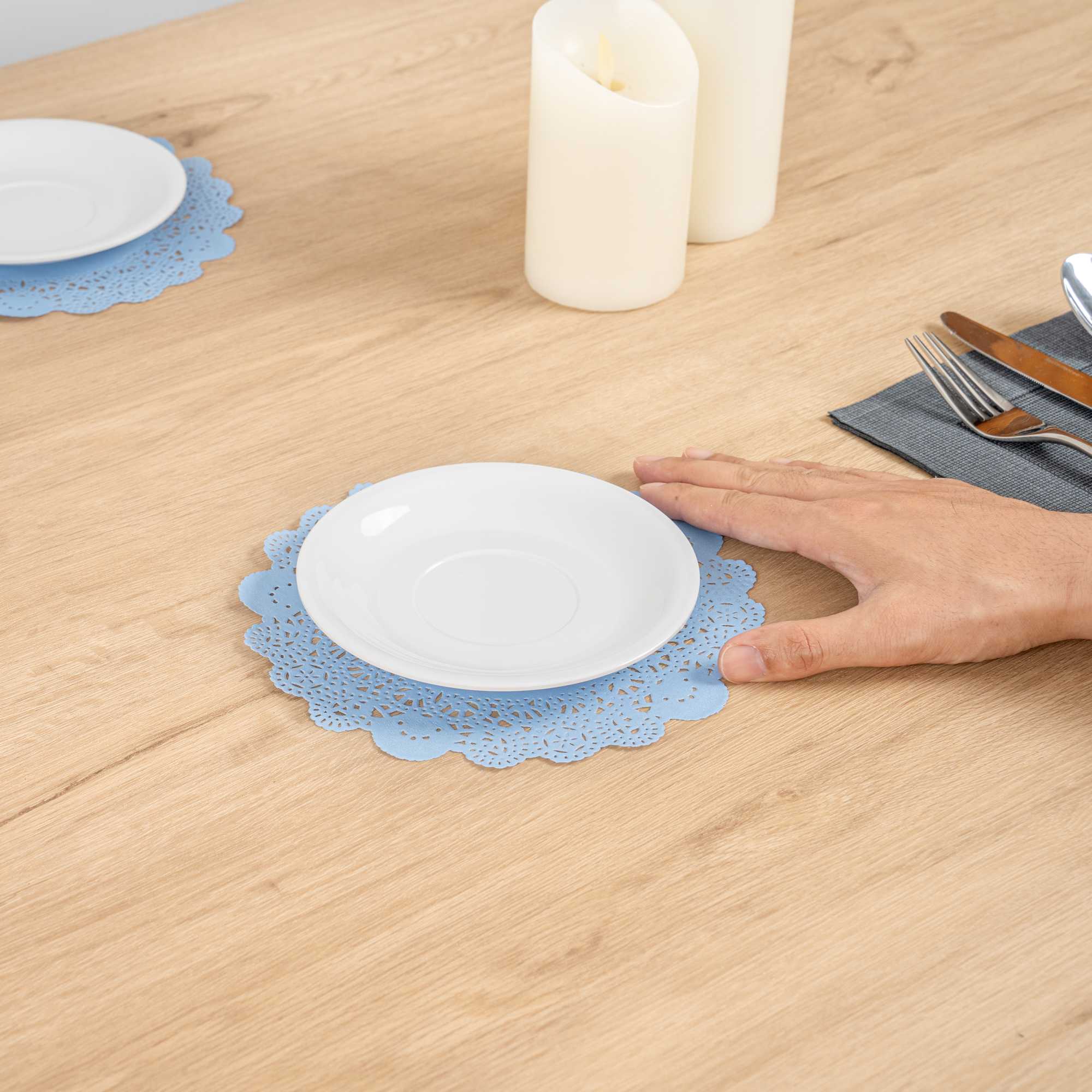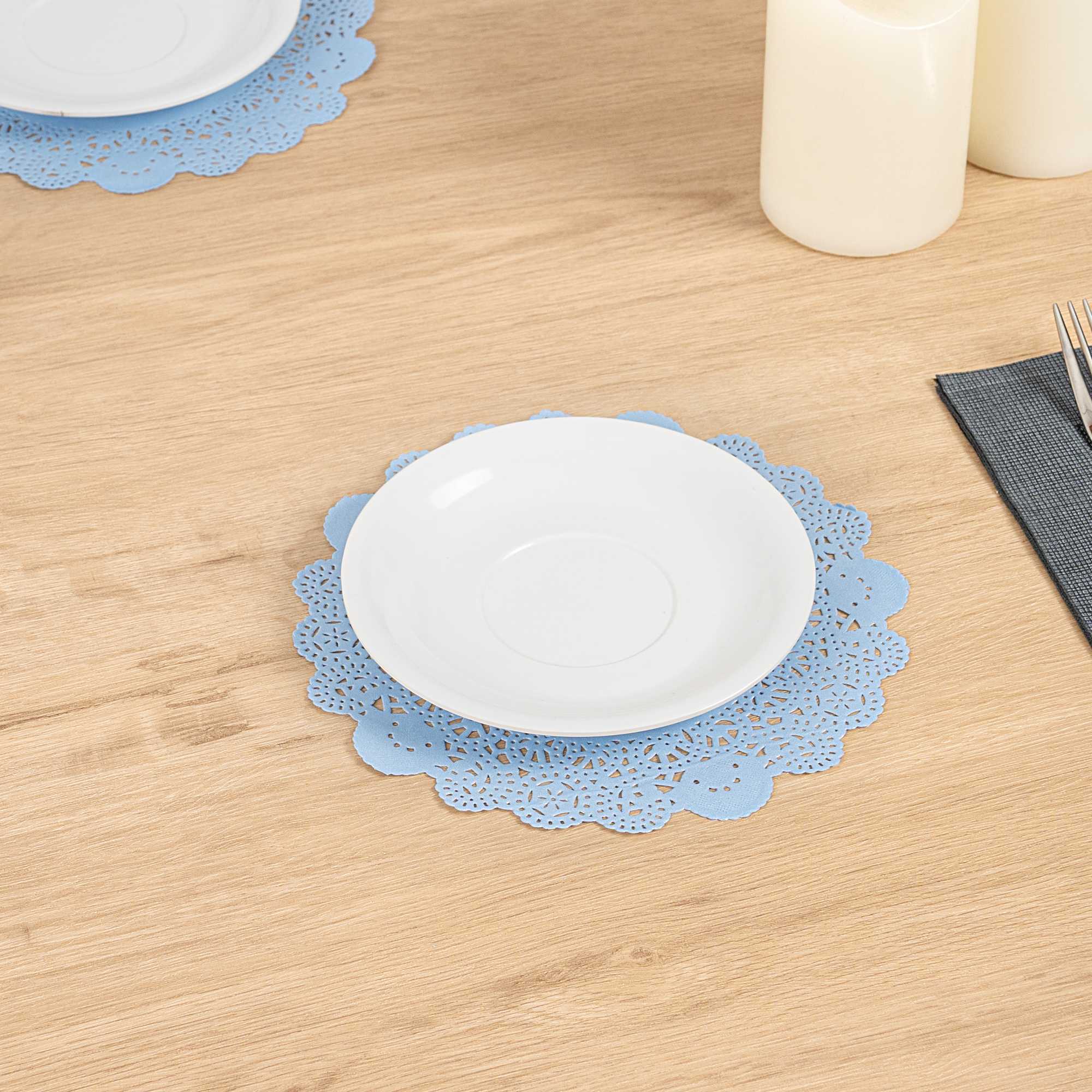 ROUND SKY BLUE PAPER DOILIES - LACE