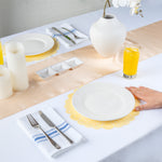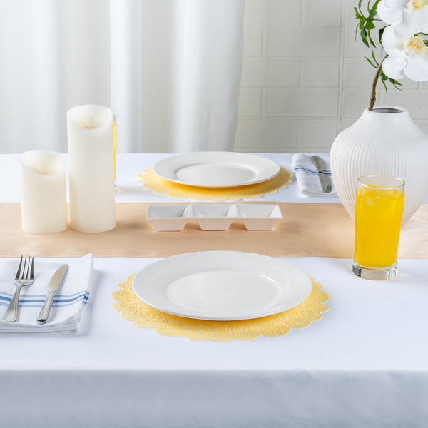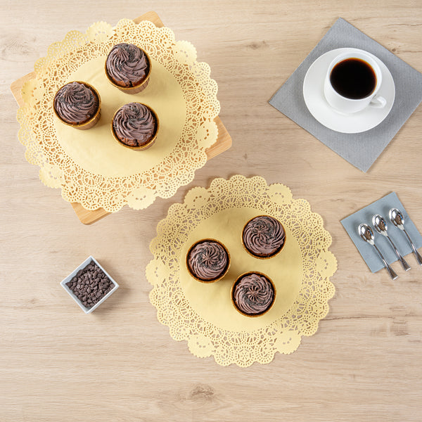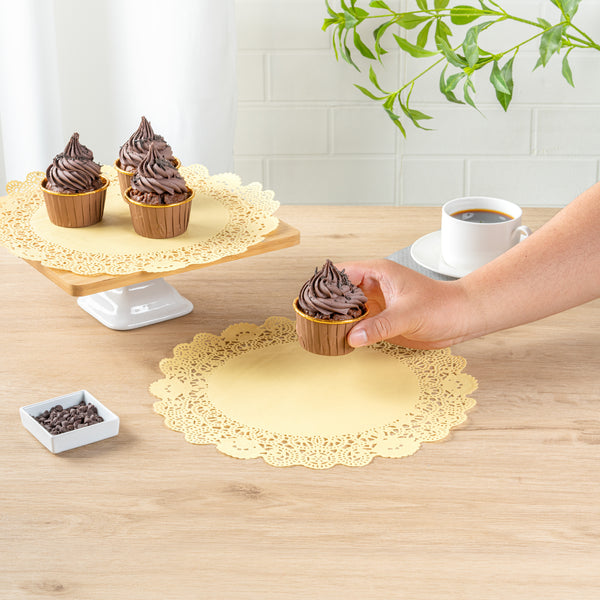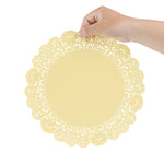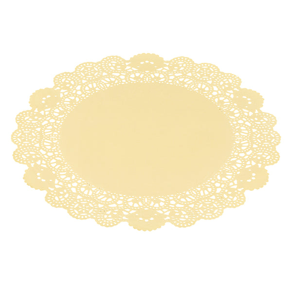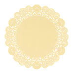 Elevate your dessert displays with our Pastry Tek Round Yellow Paper Doilies. Crafted from high-quality paper, these lace doilies provide exceptional durability, allowing you to showcase desserts at bakeries or catered luncheons without tearing or losing structural integrity. Featuring intricate lace-like details, these small doilies enhance the visual appeal of food presentations while serving as functional barriers, protecting surfaces and absorbing moisture. The vibrant yellow finish of these colored paper doilies is versatile, complementing a wide range of table settings and themes, making them an ideal choice for various events and occasions. Designed for convenience, these disposable doilies eradicate the hassle of post-event cleanup, offering a time-saving solution for busy hosts and food establishments. Perfect for use under cupcakes, petit fours, macarons, and other small treats, these table doilies ensure a charming and elegant presentation. Measuring 12 inches in diameter, these lace doilies fit seamlessly into any display. Sold in a 100 count box.