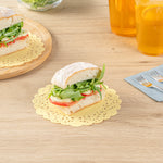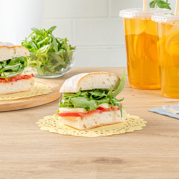 Elevate your dessert displays with our Pastry Tek Round Yellow Paper Doilies, designed to add an elegant touch to any presentation. Crafted from high-quality paper, these lace doilies provide durability while showcasing desserts at bakeries or catered luncheons without tearing or losing their structural integrity. Featuring intricate lace-like details, these table doilies not only enhance the visual appeal of food presentations but also serve as functional barriers, protecting surfaces and absorbing moisture. The vibrant yellow finish of these colored paper doilies complements a wide range of table settings and themes, making them ideal for various events and occasions. Disposable by design, these small doilies eradicate the hassle of post-event cleanup, offering a convenient and time-saving solution for busy hosts and food establishments. Perfect for use under cupcakes, petit fours, macarons, and other small treats, these paper doilies measure 6 inches in diameter, ensuring they fit seamlessly into your dessert displays. Sold in a 100 count box.