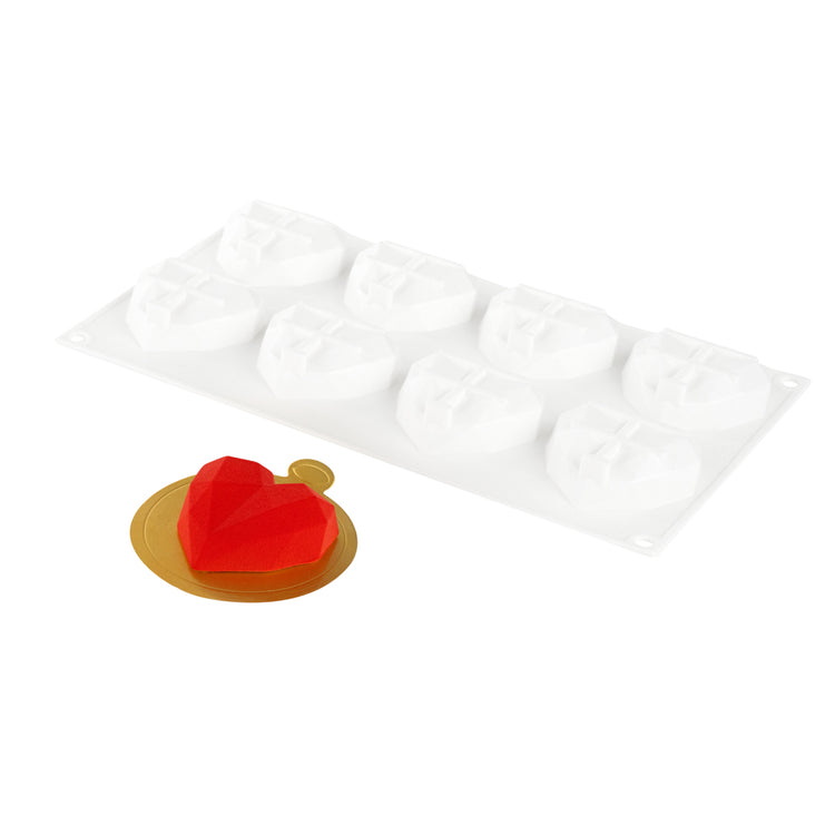 SILICONE DIAMOND HEART BAKING MOLD - 8-COMPARTMENT