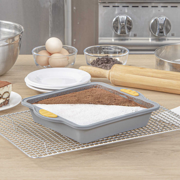 SQUARE GRAY SILICONE CAKE PAN - NON-STICK, WITH HANDLES