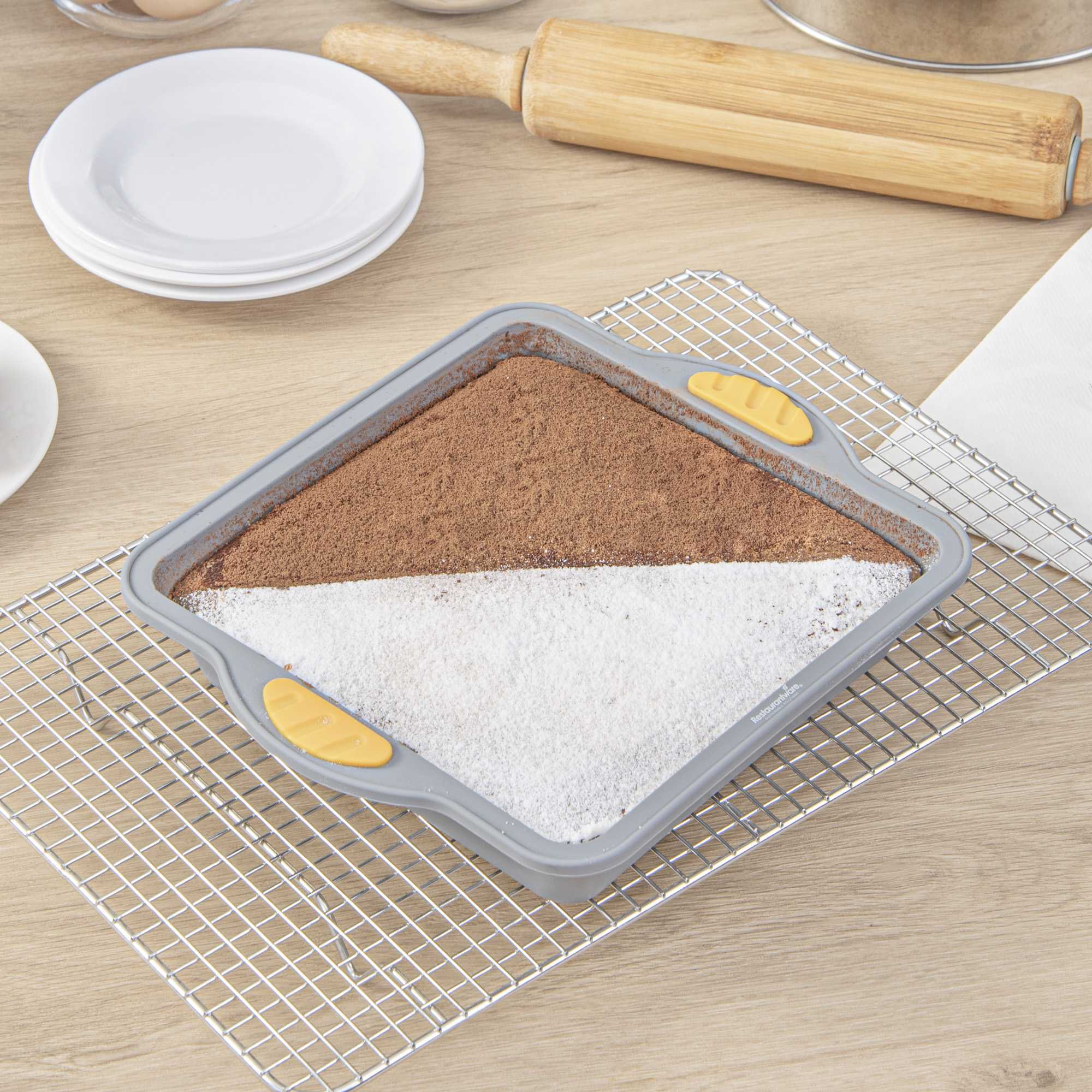 SQUARE GRAY SILICONE CAKE PAN - NON-STICK, WITH HANDLES