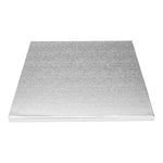 SQUARE METALLIC SILVER CARDBOARD CAKE DRUM BOARD - COVERED EDGE