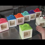 These individual cupcake containers are designed with a sturdy handle to carry your delicious baked goods with ease. Transport with optimal security!