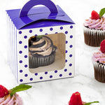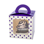 SQUARE PURPLE PAPER CUPCAKE WINDOW BOX - POLKA DOTS, FITS 1
