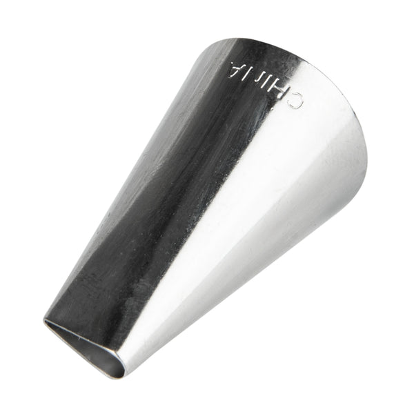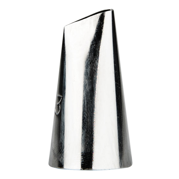 Frost creative designs on decadent desserts with our Pastry Tek #103 Petal Piping Tip. Crafted from high-quality stainless steel, this durable icing tip is rust-resistant, dishwasher-safe, and reusable. Use this versatile frosting nozzle to create delicate daisies on sweet coconut cupcakes or design a defined bow on a birthday cake at your bakery. Featuring a teardrop shape, this baking tool effortlessly produces realistic flower petals, dramatic ruffles, drapes, swags, bows, and more. This frosting decorating tip measures 0.7 inches wide by 1.2 inches tall and sold in a 1 count box.