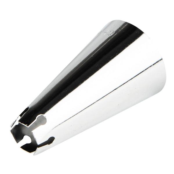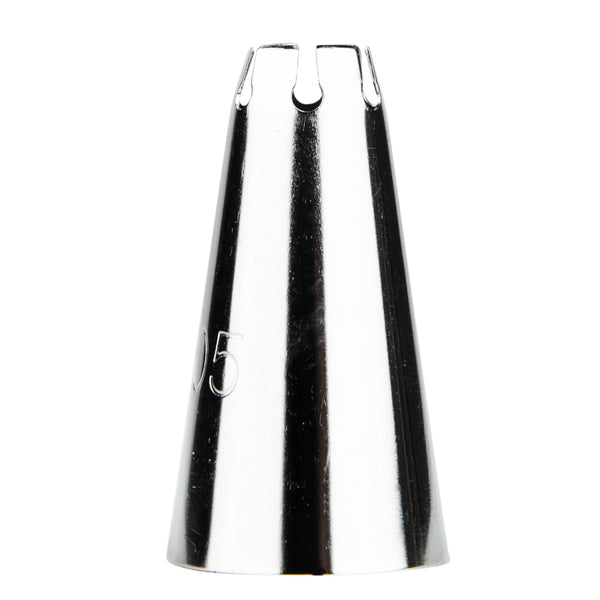 Present innovative frosting designs on your sweet treats with our Pastry Tek #105 Specialty Piping Tip. Crafted from premium stainless steel, this durable icing tip is conveniently reusable and dishwasher-safe. With a unique piping tip, this pastry bag tip creates gorgeous drop and swirled flowers, seashells, ropes, hearts, Christmas trees, and more. Uses this versatile cake piping tool to add sweet swirled flowers on chewy brownies or decorate scrumptious cupcakes with intricate frosting ropes at your bakery. This pastry bag tip measures 0.7 inches wide by 1.2 inches tall and ships in a 1 count box.