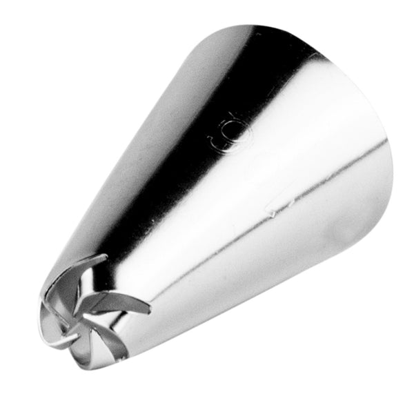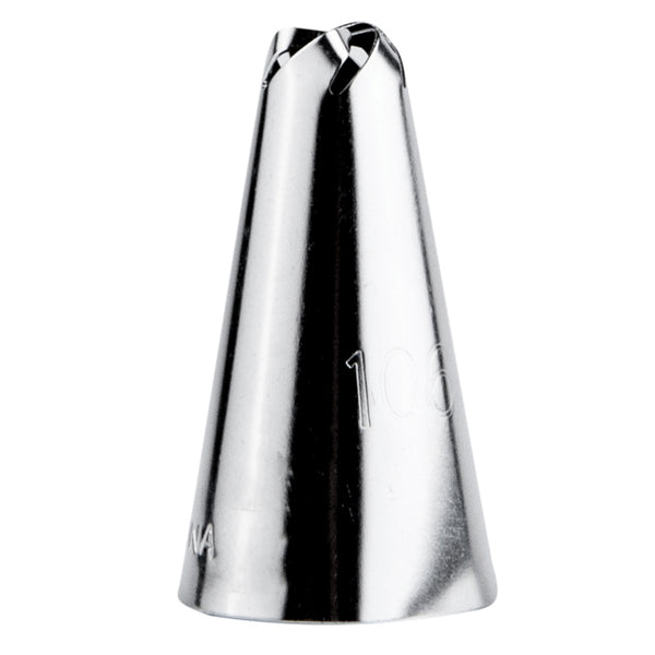 Frost delicate flowers with our Pastry Tek #106 Drop Flower Piping Tip. Featuring a swirled tip, this versatile cake decorating tip creates one-squeeze drop flowers, swirls, borders, ruffles, drapes, and more. Constructed from high-quality stainless steel, this durable rosette tip is long-lasting and dishwasher-safe. Use this drop flower tip to add luscious full frosting roses on top of red velvet cupcakes or design ruffled drapes on a marble cake from your bakery. This piping tip measures 0.7 inches wide by 1.2 inches tall and ships in a 1 count box.