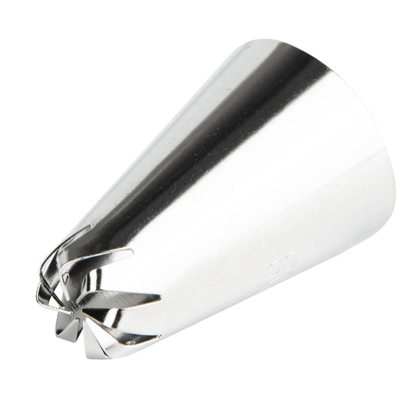 Upgrade your dessert presentations with our Pastry Tek #108 Drop Flower Piping Tip. Crafted from premium stainless steel, this flower icing tip is conveniently long-lasting and dishwasher-safe. Featuring a swirled tip, this cake decorating tip seamlessly creates beautiful drop flowers, ribbons, drapes, swirls, ruffles, and more! Use this versatile rose piping tip to design swirled drapes along a red velvet cake or add large drop flowers on top of sweet cupcakes at your bakery. This icing bag tip measures 0.8 inches wide by 1.2 inches tall and ships in a 1 count box.
