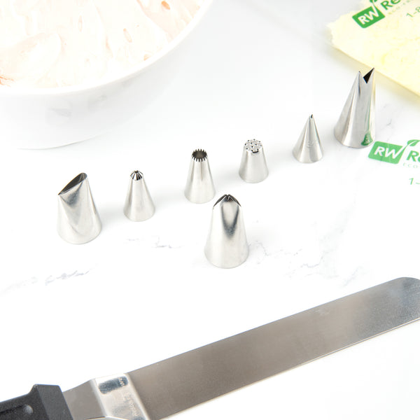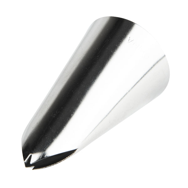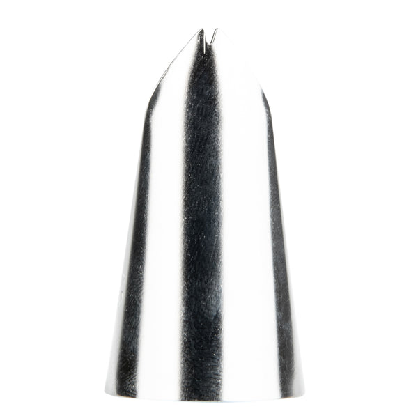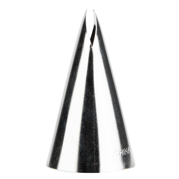 Add the finishing touch to your baked goods with our Pastry Tek #113 Leaf Piping Tip. Constructed from premium stainless steel, this cake decorating tip is conveniently reusable and rust-resistant. With a v-shaped tip, this versatile piping nozzle creates elegant frosting leaves, ruffles, borders, and more. Use this icing bag tip to add pointed leaves to beautiful frosting roses on a wedding cake or design a ruffled border on a white chocolate brownie from your bakery. This leaf piping tip measures 1 inch wide by 1.7 inches tall and ships in a 1 count box.
