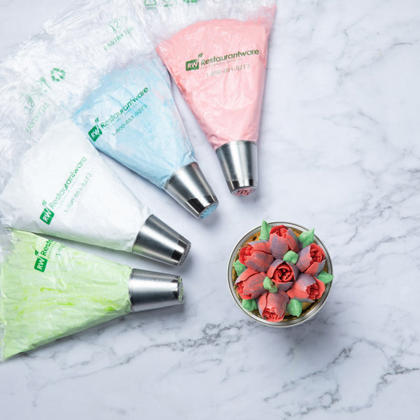 Frost eye-catching designs onto cakes using our Pastry Tek Stainless Steel #15 Russian Piping Tip. Made with high-quality stainless steel, this cupcake frosting tip is corrosion-resistant and dent-resistant to maintain its unique appearance. Featuring a Russian tip design, this dessert piping tip is great for creating detailed roses, petals, and floral borders. This stainless steel piping tip is dishwasher-safe to streamlining the cleanup process in your kitchen after use. To create a variety of floral designs on desserts, this cupcake frosting tip is compatible with our selection of piping bags and Russian piping tip couplers. This Russian dessert piping tip measures 1.5 inches in diameter and 1.75 inches in height. Shipped in a 1 count box.