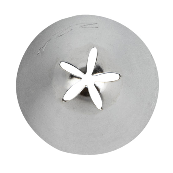 Bring a beautiful touch to your delicious baked goods with our Pastry Tek #224 Drop Flower Piping Tip. Constructed from premium stainless steel, this durable icing tip is rust-resistant and dishwasher-safe. With a 5 petal design and center bar, this versatile icing nozzle tip to makes seamless drop flowers, swirls, borders, ruffles, drapes, and more. Use this cake decorating icing tip to create textured drapes along a wedding cake or add simple drop flowers on a sweet sugar cookie from your bakery. This pastry bag tip measures 0.7 inches wide by 1.2 inches tall and ships in a 1 count box.