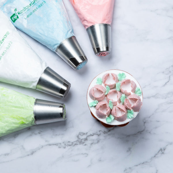 Make gorgeous frosted flowers with our Pastry Tek Stainless Steel #28 Russian Piping Tip. These cake frosting tips produce flawless rosebuds so you can impress customers at your bakery or restaurant. Coordinate this Russian icing tip with our pastry bags and Russian couplers to change tips without wasting frosting. Constructed from stainless steel, this cake icing nozzle is corrosion-resistant, dent-resistant, and reusable to withstand long-lasting use at your establishment. This rose piping tip is dishwasher-safe for a quick and hassle-free cleanup. Measuring 1.5 inches in diameter by 1.75 inches in height, this pastry tip creates perfectly-sized rosebuds. Sold in a 1 count box.