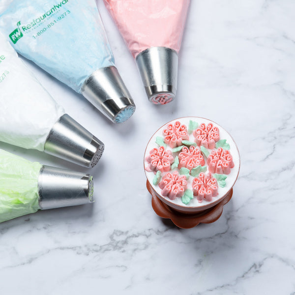 Embellish your desserts with our Pastry Tek Stainless Steel #3 Russian Piping Tip. Great for wedding cakes or birthday cupcakes, this piping bag tip instantly creates elaborate flowers to impress your guests. This Russian nozzle is corrosion-resistant, dent-resistant, and reusable to minimize waste at your restaurant. Match this pastry bag tip with our Russian couplers and pastry bags to effortlessly create intricate borders on your baked goods. To quickly remove frosting from the nozzle, this icing decorating tip dishwasher-safe. This cake nozzle measures 1.5 inches in diameter by 1.75 inches in height. Sold in a 1 count box.