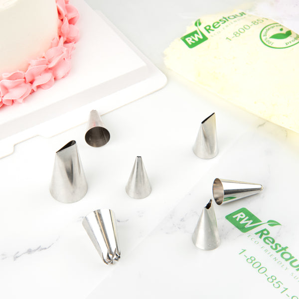 Add intricate frosting designs to your sweet treats with our Pastry Tek #301 Round Piping Tip. Crafted from premium stainless steel, this icing bag tip is conveniently reusable and rust-resistant. Featuring a small round tip, this cake decorating tip effortlessly produces beautiful outlines, dots, beads, lattice, lettering, and more. Use this versatile piping bag nozzle to create elegant stringwork along a wedding cake or design intricate dots on a chocolate chip cookie from your bakery. This durable frosting nozzle measures 0.7 inches wide by 1.2 inches tall and ships in a 1 count box.