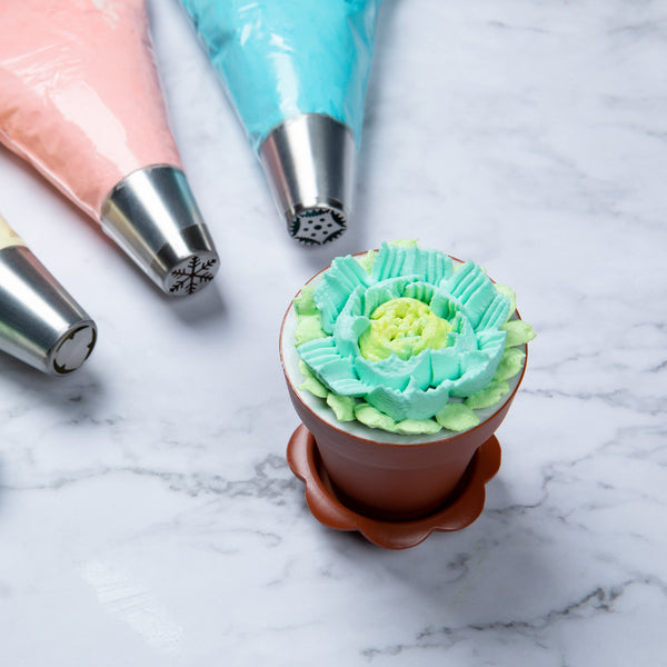 Create one-of-a-kind buttercream flower petals with our Pastry Tek Stainless Steel #31 Russian Piping Tip. To give your cake decorations a unique look, this piping bag tip adds texture to your flower petals or borders. Combine this Russian frosting tip with our piping bags and Russian couplers for easily adding ruffles to your cupcakes and cookies. Made from stainless steel, this icing piping nozzle is dent-resistant, corrosion-resistant and reusable so you can decorate pastries over and over again. To quickly wash up after embellishing baked goods, this cake frosting tip is dishwasher-safe. This Russian cake tip measures 1.5 inches in diameter by 1.75 inches in height. Sold in a 1 count box.