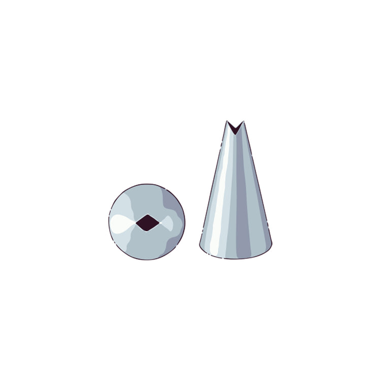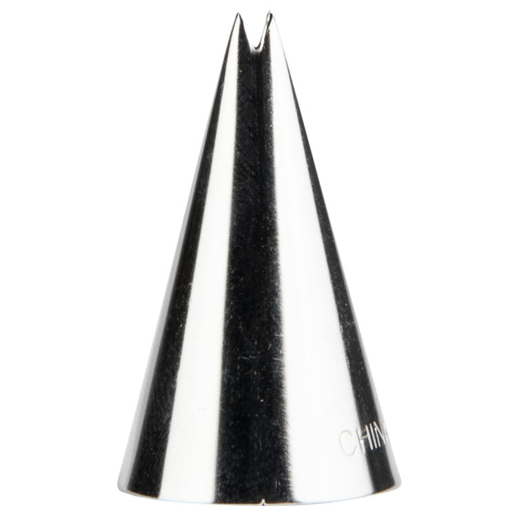 Bring a delicate touch to baked goods with our Pastry Tek #349/352S Leaf Piping Tip. Constructed from stainless steel, this durable cake nozzle is conveniently scratch and rust resistant. Featuring a small v-shaped tip, this cake decorating tip easily creates dainty leaves, elegant ruffles, beautiful seashells, and more. Use this leaf piping tip to add tiny leaves along a gorgeous frosted flower or add an intricate ruffled border along a cake from your bakery. This icing bag tip measures 0.7 inches wide by 1.2 inches tall and ships in a 1 count box.