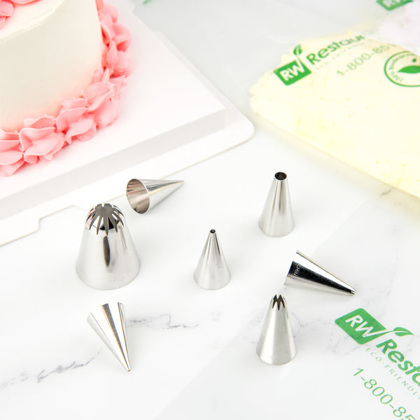 Create precise lettering and fine outlines with our Pastry Tek Stainless Steel #4 Round Piping Tip. Designed with a medium-sized round opening, this cake decorating tip creates rounded swirls, creative lettering, delicate outlines, and all sorts of shapes and writing with ease. Use this frosting piping tip to add fine or bold letters, borders, and designs to cakes, cookies, cupcakes, and more! Made from food-safe stainless steel, this cupcake frosting tip is dent-resistant and conveniently easy to clean. Each of these #4 round icing tips measures 0.7 inches wide by 1.2 inches tall and fits most frosting bags and couplers. Ideal for bakers, caterers, and pastry chefs, this professional piping tip is shipped individually in a 1 count box.