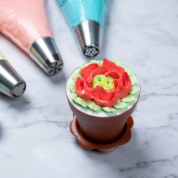 Effortlessly pipe delicate flowers on pies, cakes, or cupcakes with our Pastry Tek Stainless Steel #43 Russian Piping Tip. Crafted from premium stainless steel, this corrosion-resistant cake nozzle is designed to maintain its shape to ensure you constantly create intricate details on made-to-order desserts. This Russian icing tip allows you to pipe flower petals with one squeeze of the piping bag to increase efficiency and cut down on decorating time. Coordinate this stainless steel piping nozzle with our selection of Russian piping couplers and piping bags to conveniently switch between decorating tools. To quickly remove leftover frosting on the tip of the nozzle, this Russian pastry tip is safe for commercial dishwasher use. This piping tip measures 1.5 inches in diameter by 1.75 inches in height. Shipped in a 1 count box.