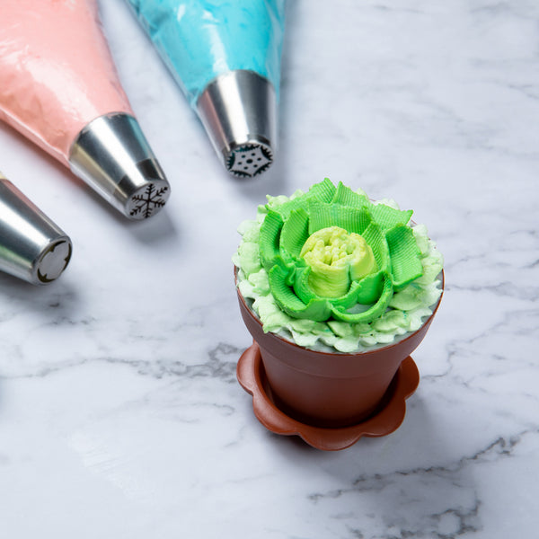 Create detailed Swiss meringue or American buttercream flowers with our Pastry Tek Stainless Steel #44 Russian Piping Tip. This Russian tip allows you to frost floral details with one squeeze of the piping bag to streamline your dessert decorating process. Made from durable stainless steel, this icing piping tip is specially designed to withstand repeated use at your bakery or cafe without bending out of shape. This stainless steel piping tip is conveniently dishwasher-safe, eliminating the need for your employees to remove leftover buttercream from the tip by hand. To switch between decorating tools while frosting, this corrosion-resistant piping nozzle is compatible with our collection of Russian piping tip couplers and piping bags. This frosting tip measures 1.5 inches in diameter by 1.75 inches in height. Sold in a 1 count box.