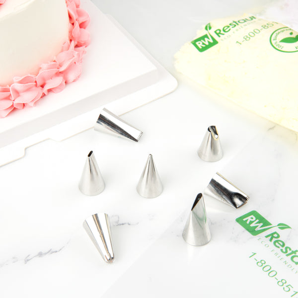 Effortlessly create miniature leaves for buttercream rosettes and floral accents using our Pastry Tek Stainless Steel #65S Leaf Piping Tip. Featuring an extra small leaf-shaped opening, this piping bag tip produces miniature foliage with ease. Use this professional cake piping tip to add quick details to rosette-piped cupcakes, or to add realistic-looking leaves to roses on a wedding cake. Measuring 0.7 inches in width by 1.3 inches in height, this icing tip is suitable for use with most standard-sized frosting bags and couplers. Each of these #65S piping tips is made from high-quality stainless steel and is conveniently dent-resistant and corrosion-resistant. Shipped in a 1 count box.