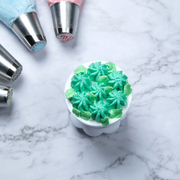 Easily decorate cakes for special occasions with our Pastry Tek Stainless Steel #7 Russian Piping Tip. This cake decorating tip allows you to instantly add eye-catching flowers to your delicious cupcakes. Constructed from stainless steel, this icing bag tip is corrosion-resistant, dent-resistant, and reusable which allows you to decorate an abundant amount of cakes. Match this flower piping tip with our pastry bags and Russian tip couplers to give your wedding cakes the perfect final touches. To quickly clean up after decorating desserts, this Russian cake tip is dishwasher-safe. This icing decorating tip measures 1.5 inches in diameter by 1.75 inches in height. Sold in a 1 count box.