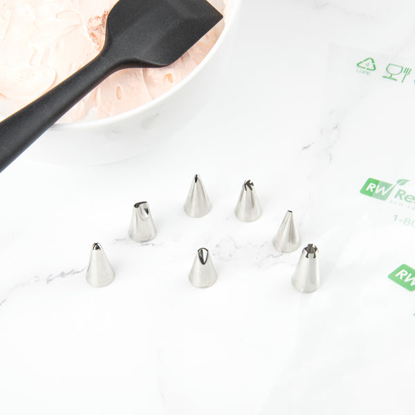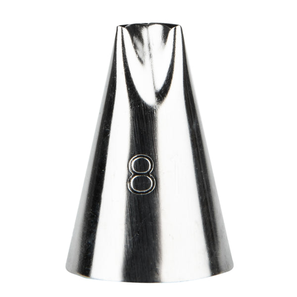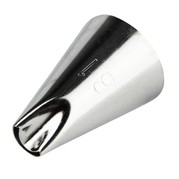 Add the final touch to your baked goods with our Pastry Tek #81 Specialty Piping Tip. Crafted from high-quality stainless steel, this durable icing tip is rust-resistant and conveniently reusable. Featuring a small curved tip, this cake nozzle is ideal for creating beautiful frosting blossoms, zigzags, and tight ruffles. Use this versatile pastry nozzle to elegantly design lily of the valley blossoms on top of decadent cakes or create ruffled borders on triple chocolate brownies at your bakery. To complete your beautiful icing flowers, coordinate this piping tip with our #349 Leaf Piping Tip (SKU: RWT0425). This flower icing tip measures 0.7 inches wide by 1 inch tall and is available in a 1 count box.